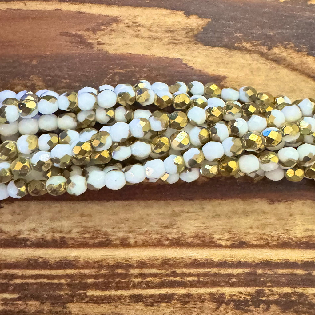 JKB-0922 - Czech Glass Fire Polish Beads, White Gold, 4mm | Strand