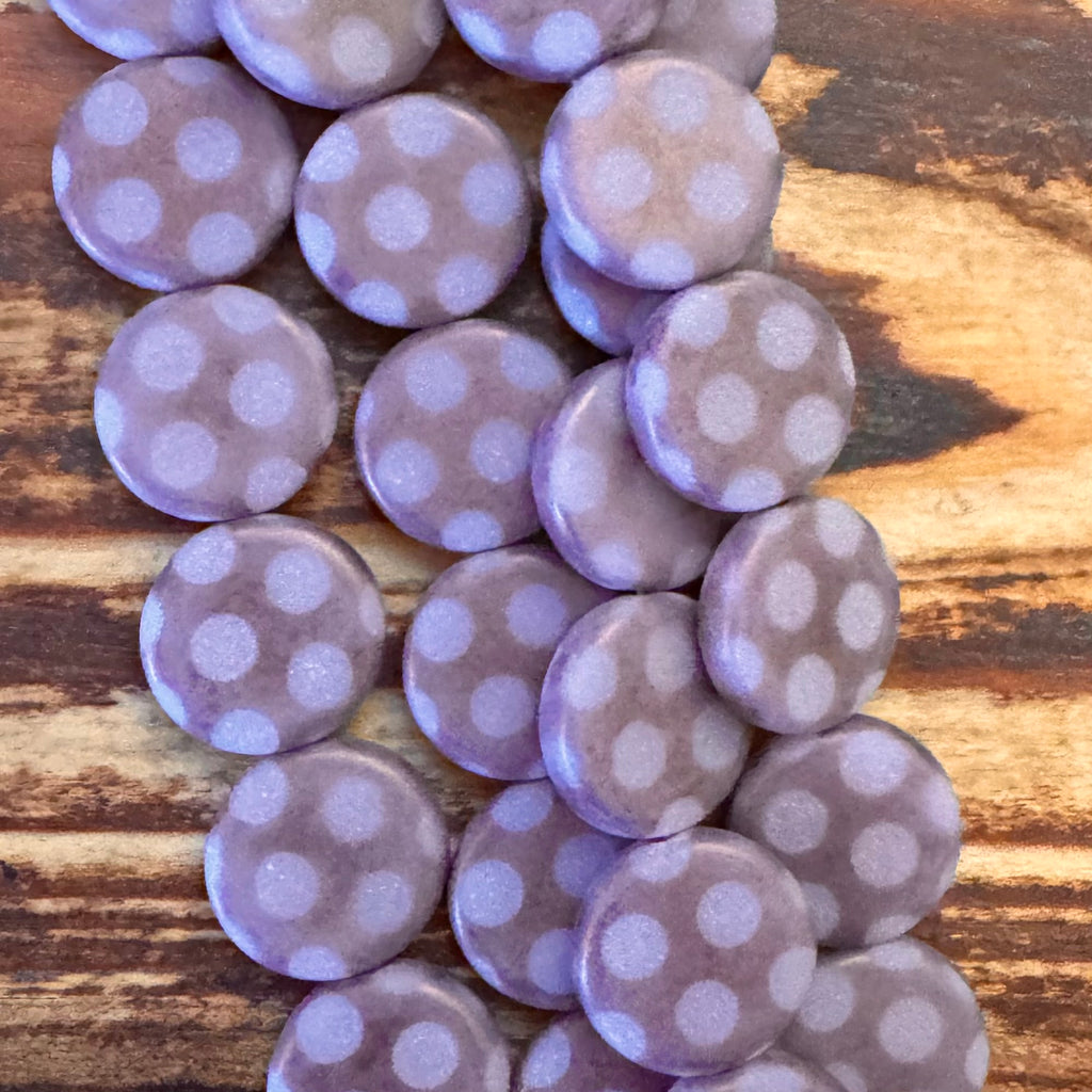 JKB-0933 - Czech Glass Coin Beads, Lavender Dots, 15mm | Strand