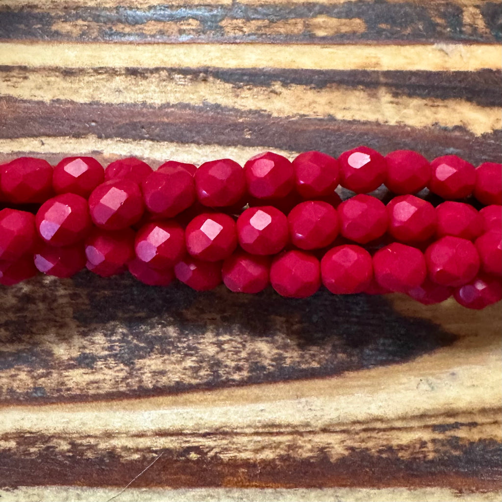JKB-0949 - Czech Glass Fire Polish Beads, Opapue Cherry Red, 6mm | Strand