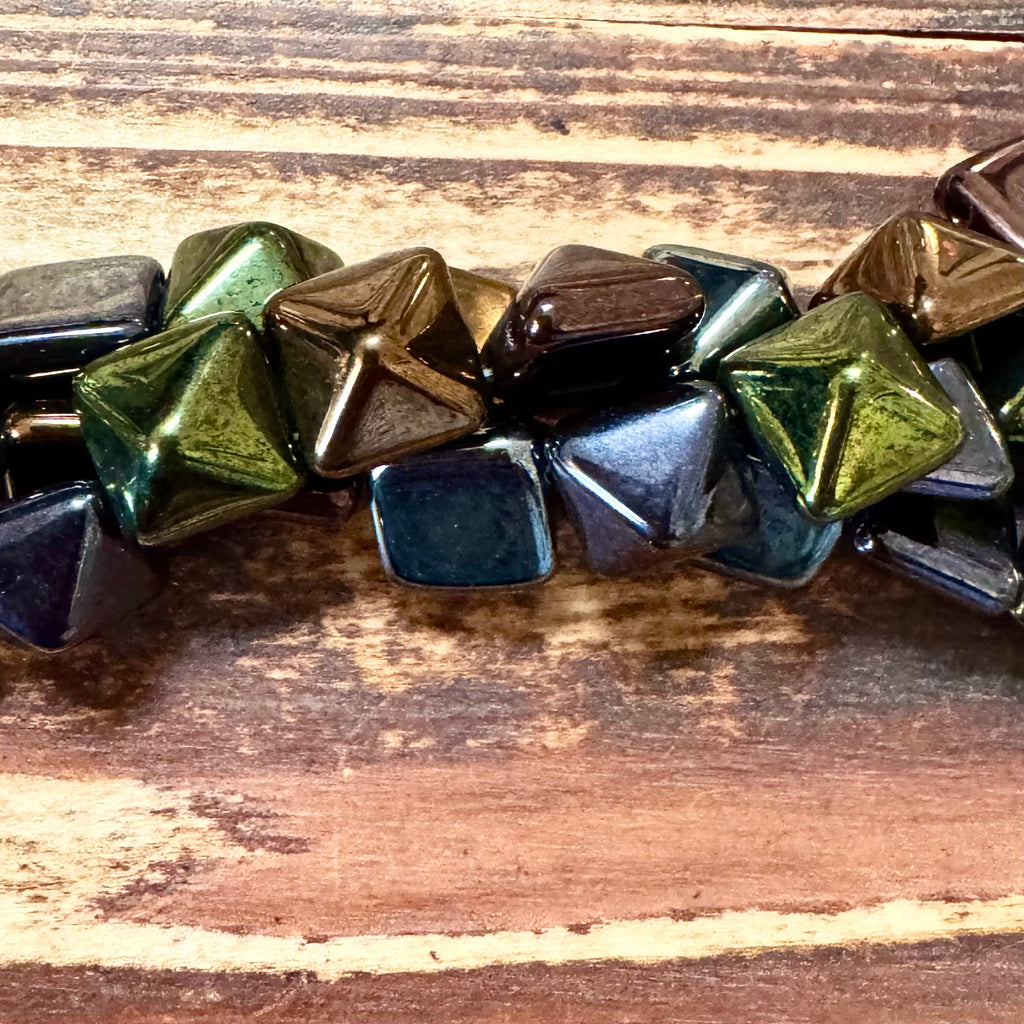 JKB-0982 - Czech Glass Pyramid Beads, Metallic Multi, 12mm | Strand