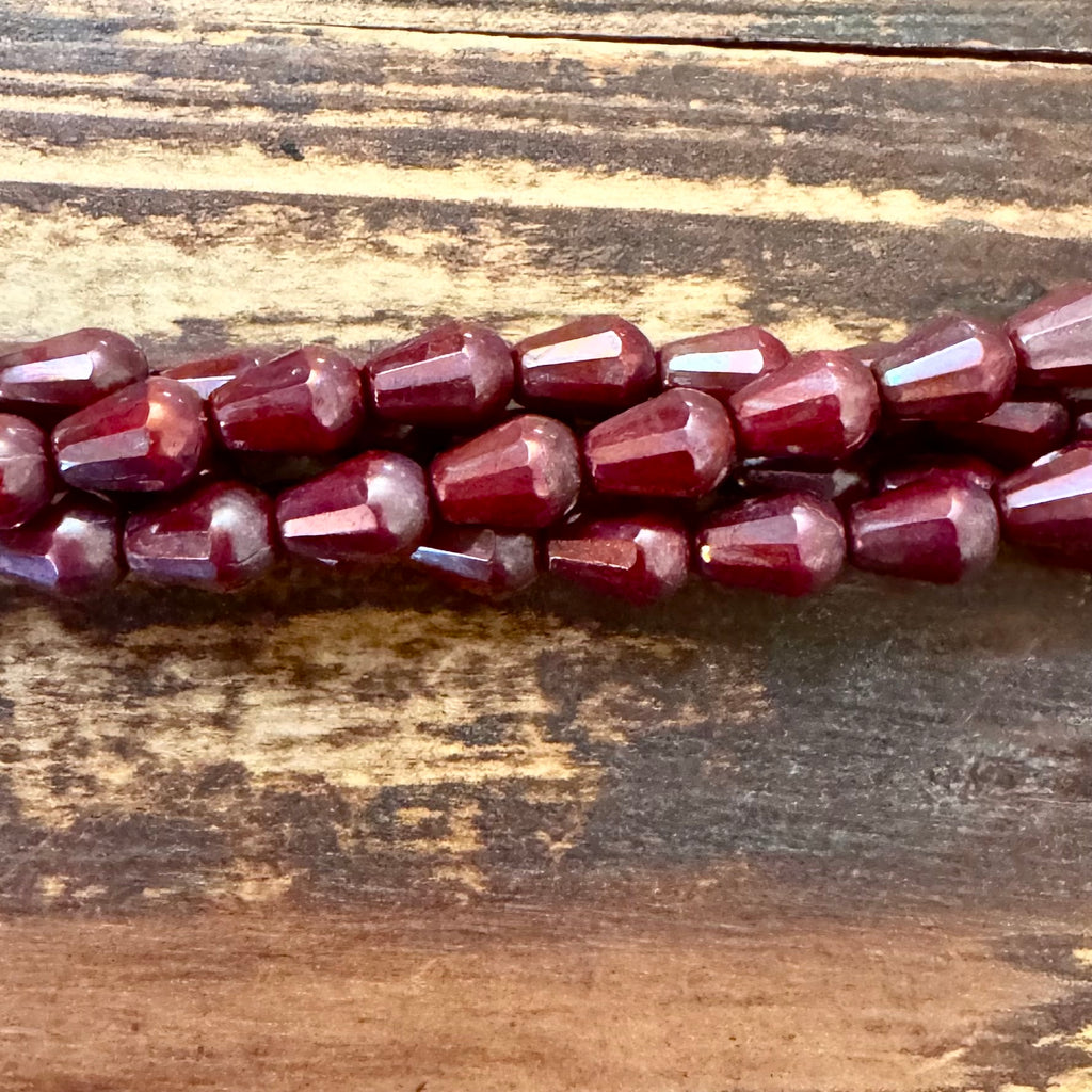 JKB-1007 - Czech Glass Faceted Teardop Bead, Glossy Wine, 6x8mm | Strand
