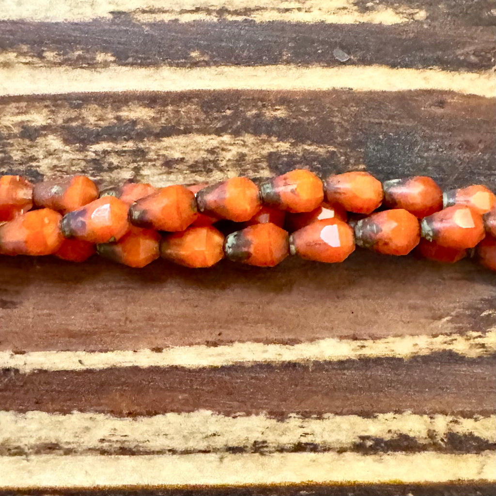 JKB-1014 - Czech Glass Faceted Teardrop Beads, Burnt Orange, 6x8mm | Strand