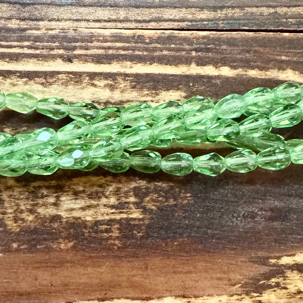 JKB-1015 - Czech Glass Faceted Teardrop Beads, Peridot, 4.5x7mm | Strand