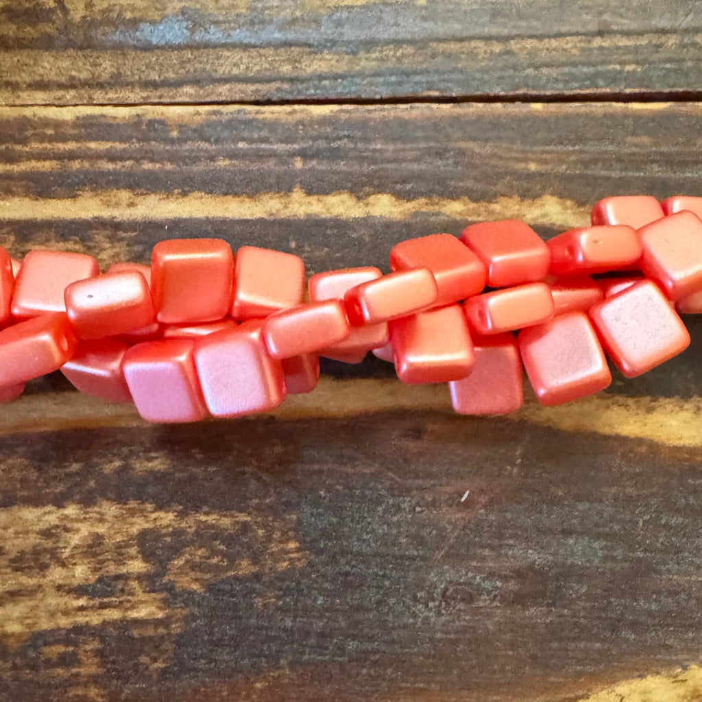 JKB-1026 - Czech Glass 2 Hole Tile Beads, Peach Shimmer, 6mm | Strand