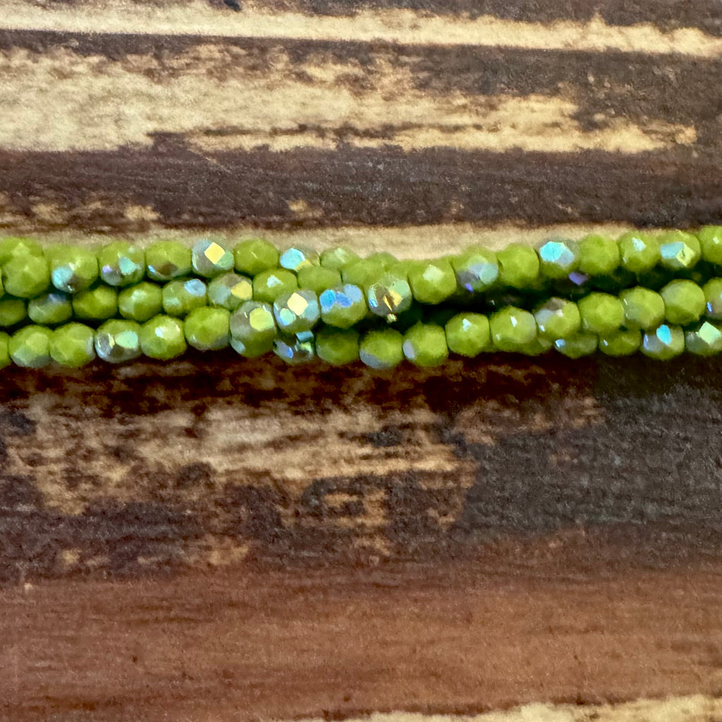 JKB-1041 - Czech Glass Fire Polish Beads, Avacado AB, 3mm | Strand