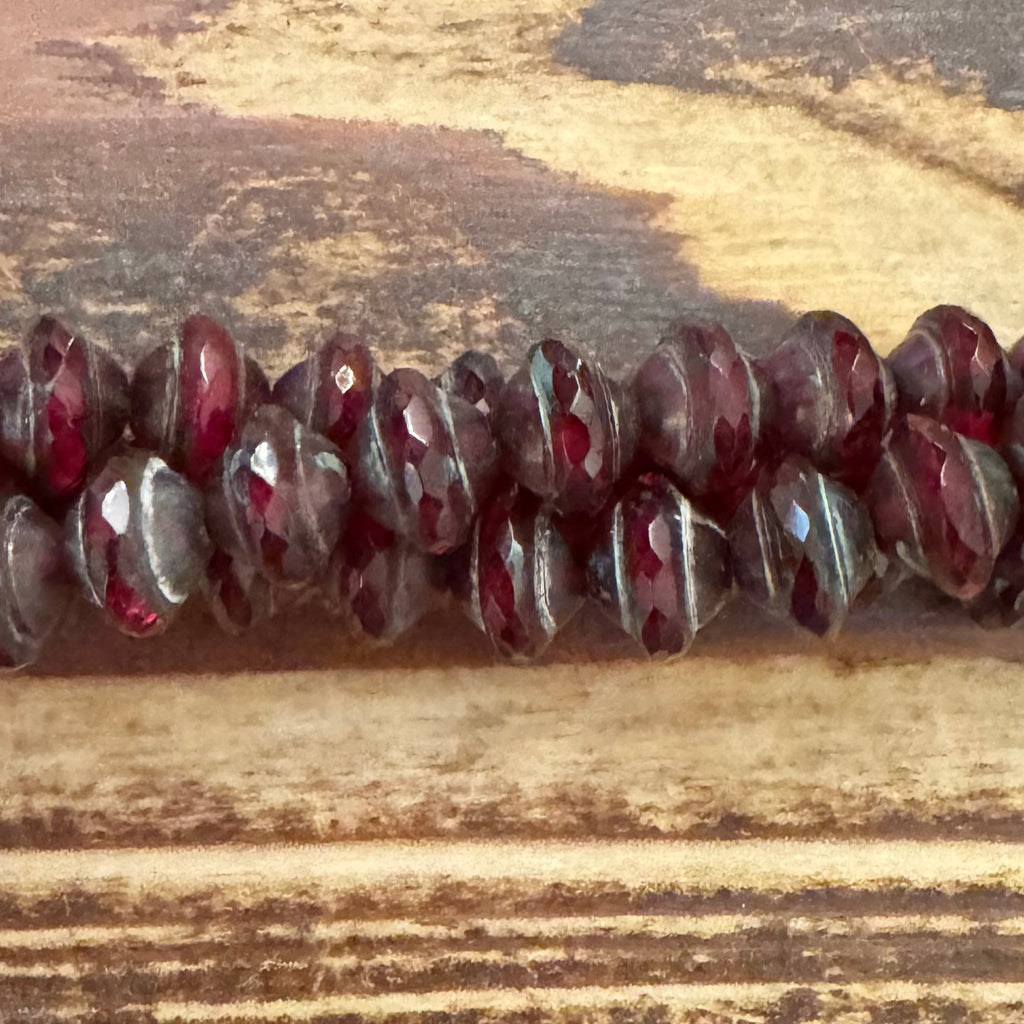 JKB-0925 - Czech Glass Faceted Saucer Beads, Siam, 7x9mm | Strand