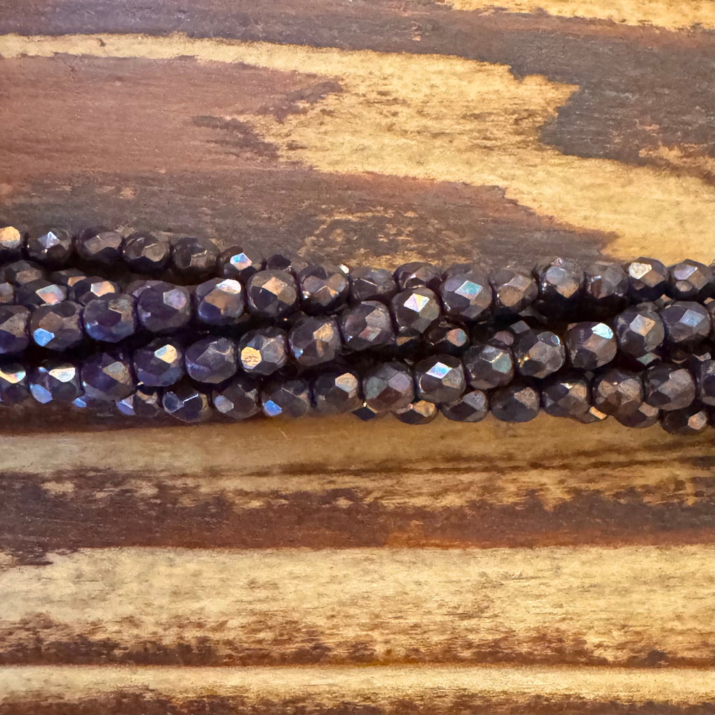 JKB-0930 - Czech Glass Fire Polish Beads, Metallic Purple, 4mm | Strand