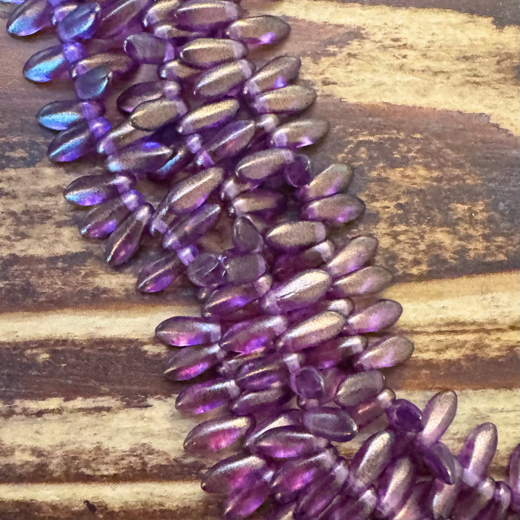 JKB-0937 - Czech Glass Dagger Beads, Iridescent Purple, 3x7mm | Strand