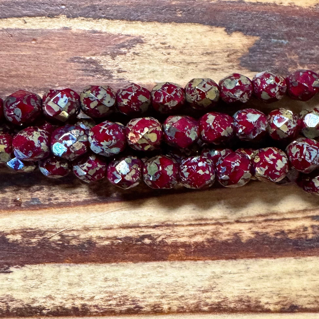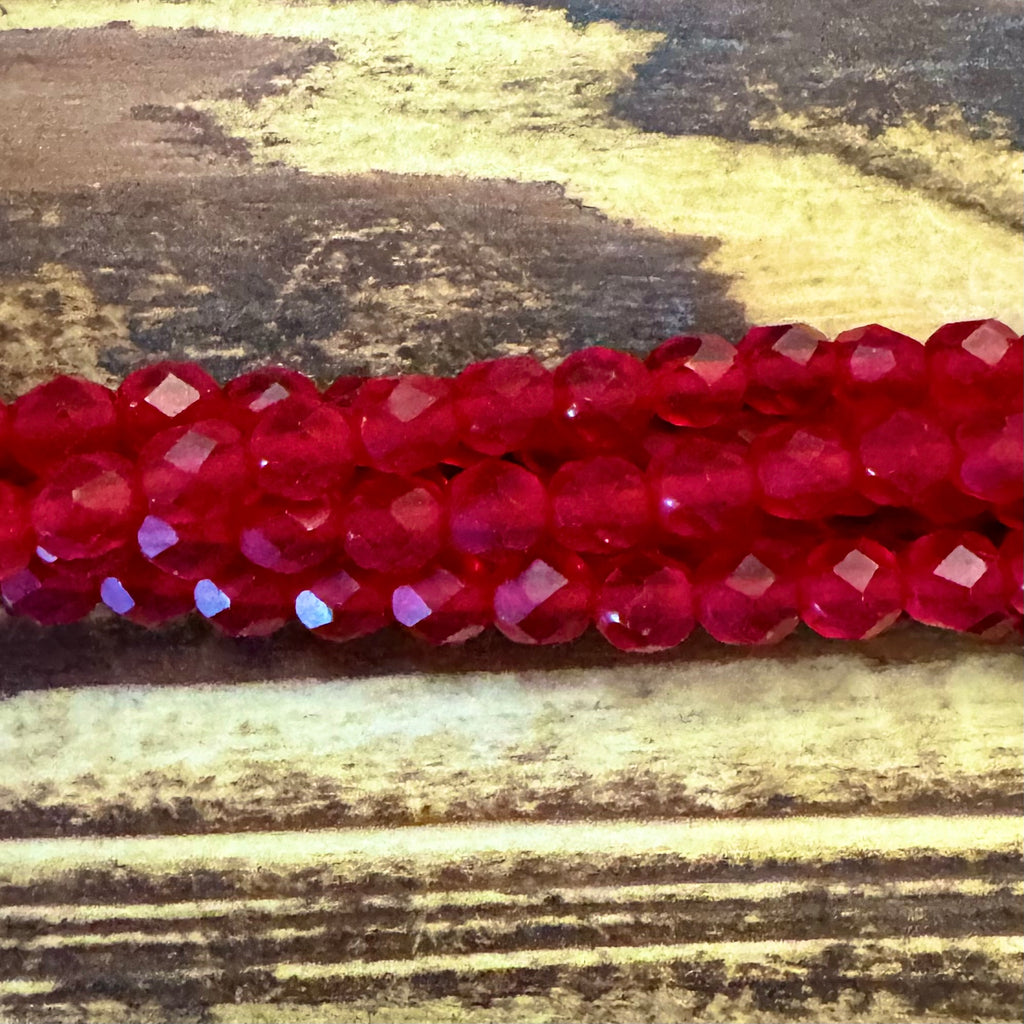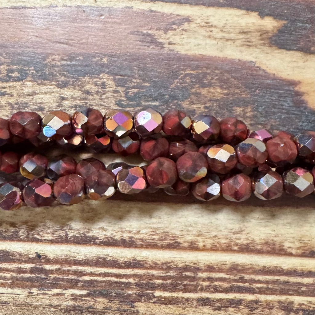 JKB-0954 - Czech Glass Fire Polish Beads, Burnt Red AB, 6mm | Strand
