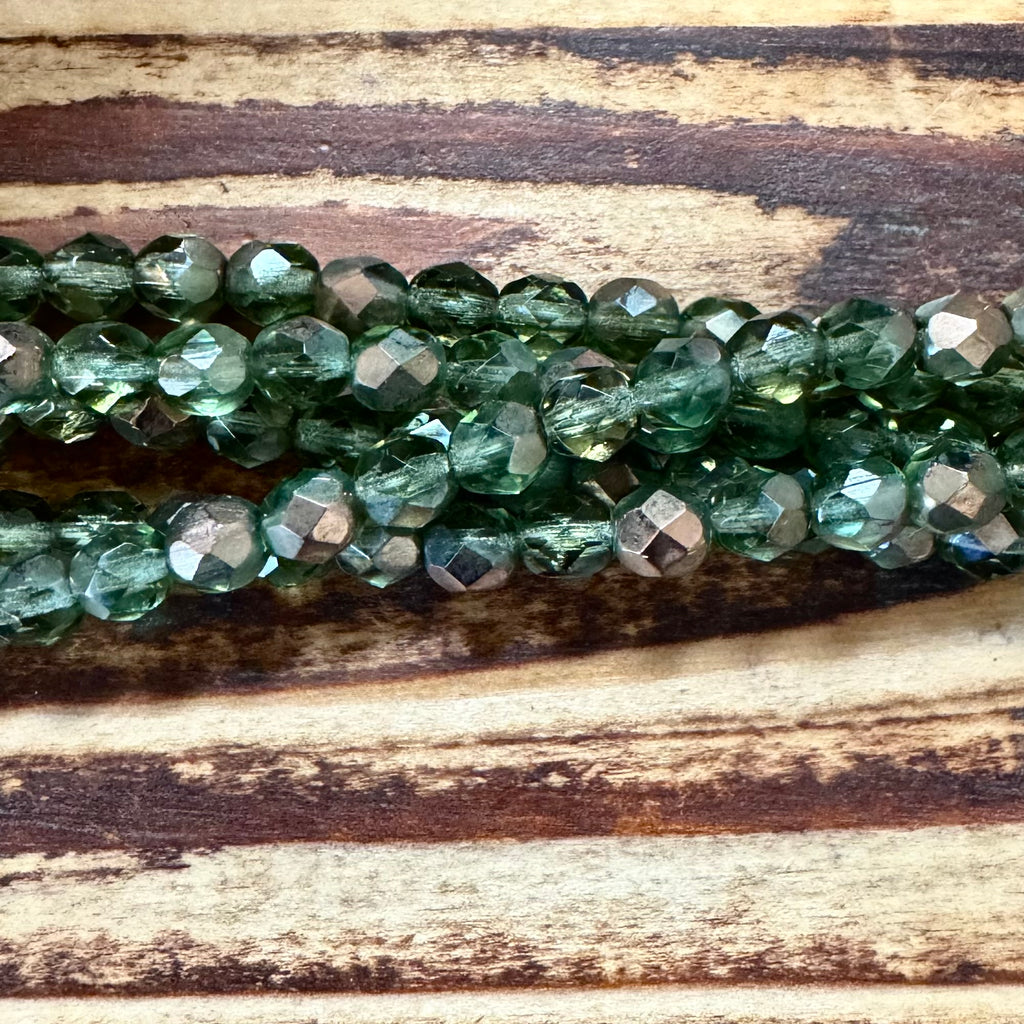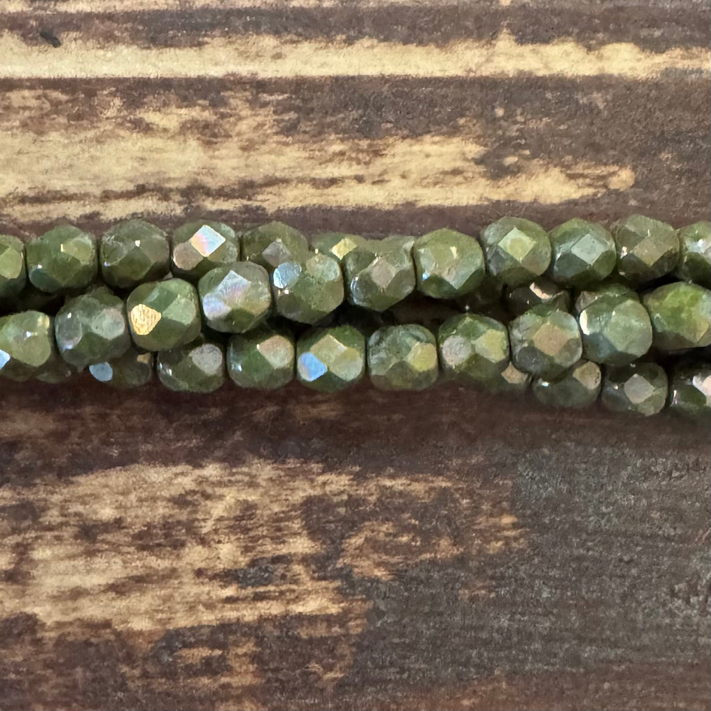 JKB-1042 - Czech Glass Fire Polish Beads, Army Green, 4mm | Strand