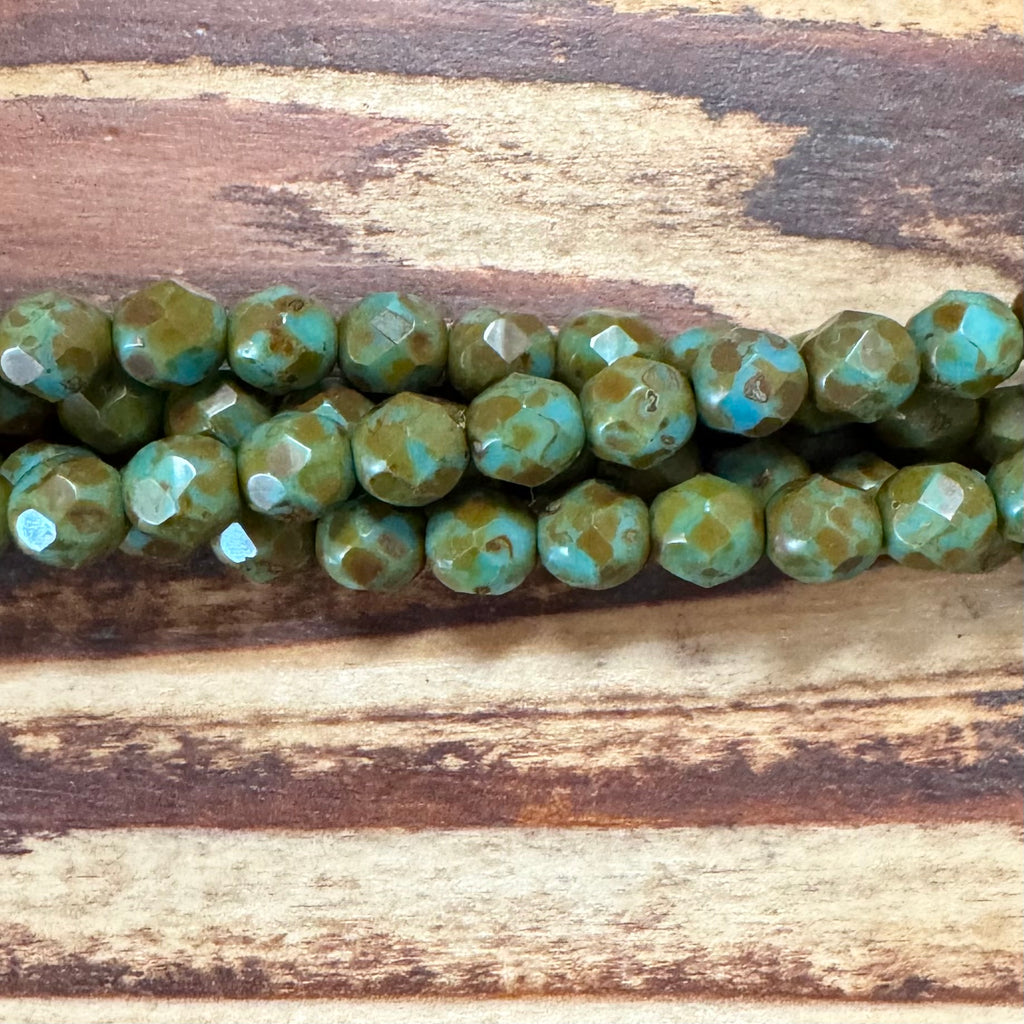 JKB-0955 - Czech Glass Fire Polish Beads, Turquoise Picasso, 6mm | Strand