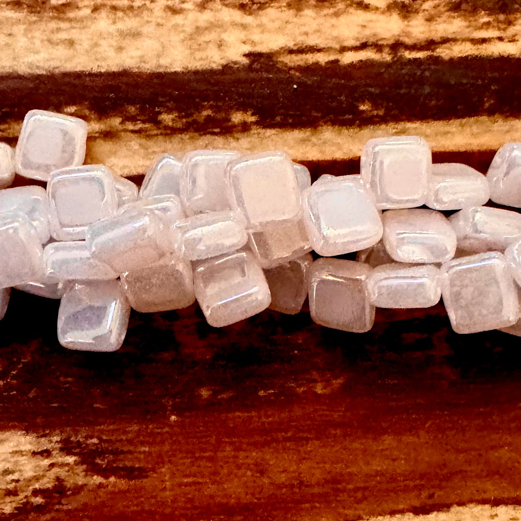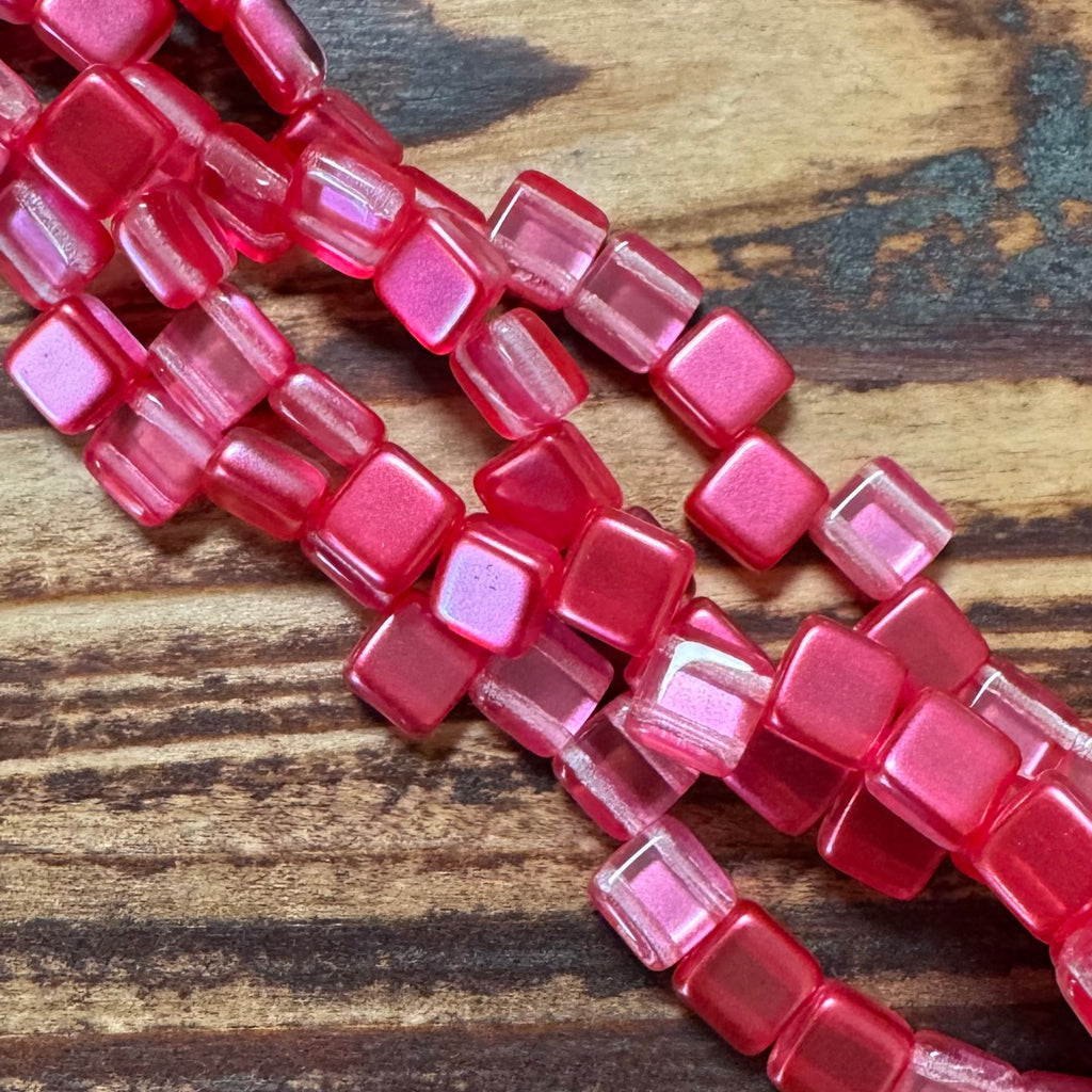 JKB-1034 - Czech Glass 2 Hole Tile Beads, Satin Pink, 6mm | Strand