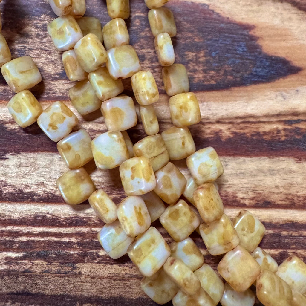 JKB-0961 - Czech Glass 2 Hole Tile Beads, Tan Picasso, 6mm | Strand