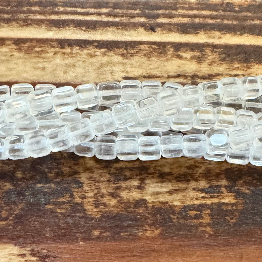 JKB-0966 - Czech Glass Cube Beads, Crystal, 4mm | Strand