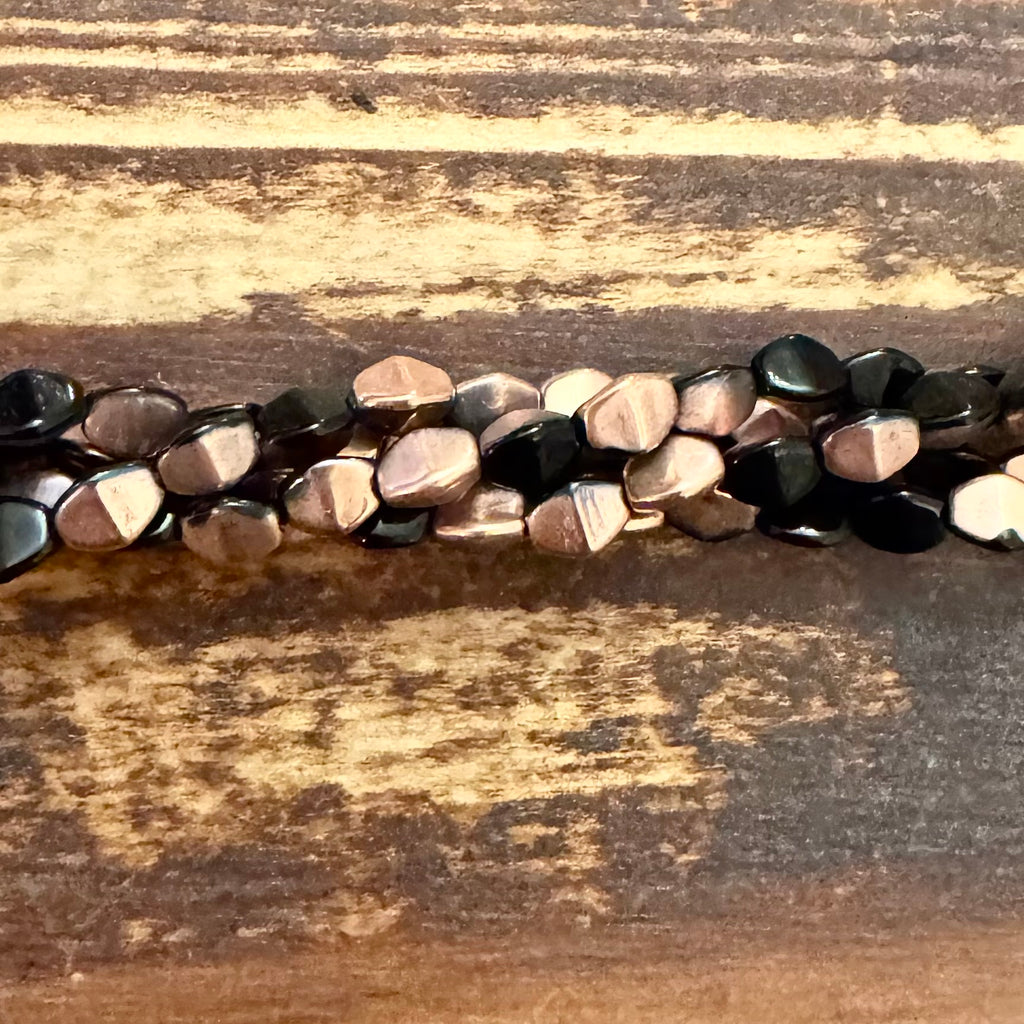JKB-0986 - Czech Glass Pinch Beads, Jet/Copper, 4x5mm | Strand