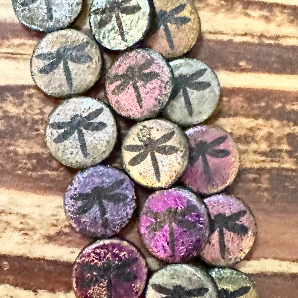 JKB-1000 - Czech Glass Disc Beads, Foil Dragonfly, 14mm | Strand