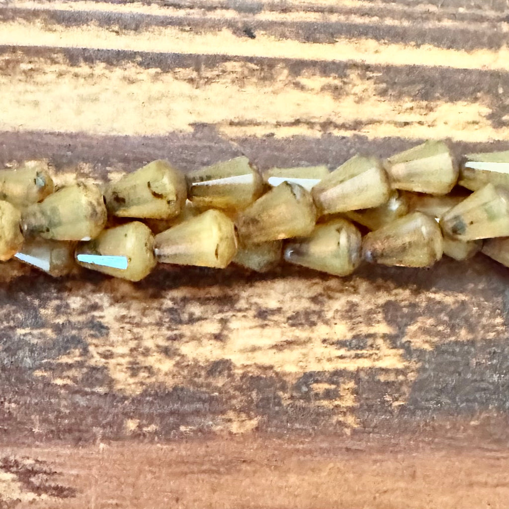 JKB-1006 - Czech Glass Faceted Teardop Bead, Sandy Travertine, 6x8mm | Strand