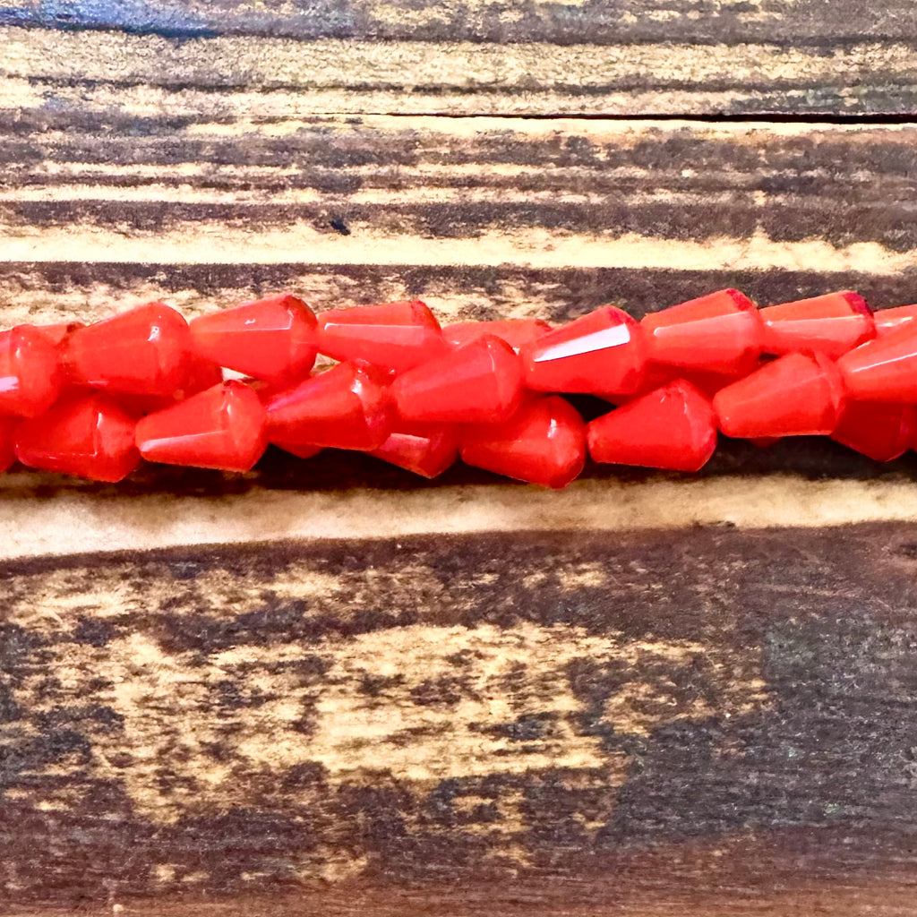 JKB-1009 - Czech Glass Faceted Teardop Bead, Red, 6x8mm | Strand