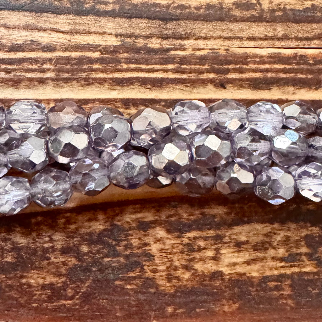 JKB-1012 - Czech Glass Fire Polish Beads, Lilac Ice, 7mm | Strand