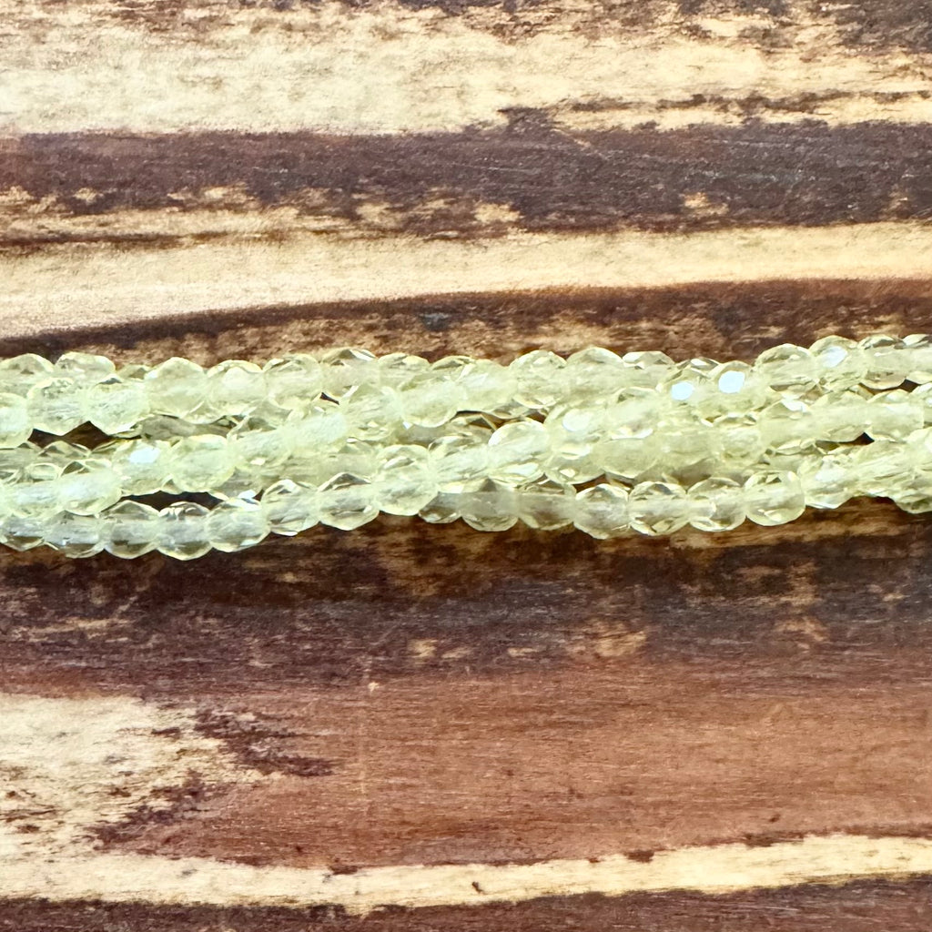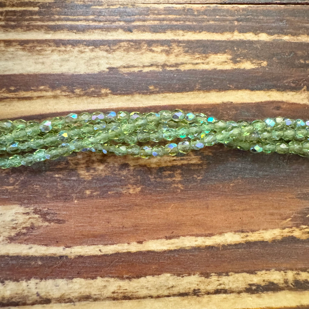 JKB-1040 - Czech Glass Fire Polish Beads, Lt. Green AB, 3mm | Strand