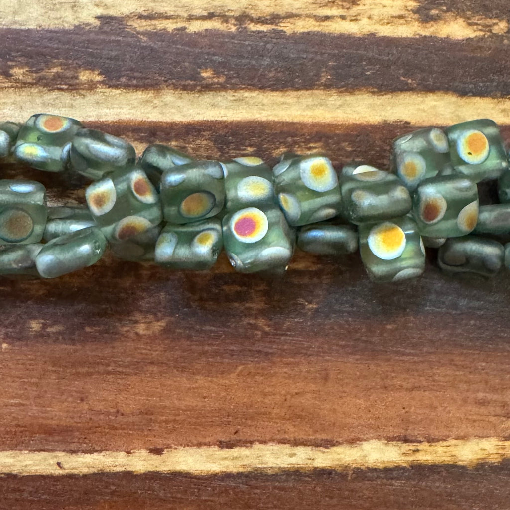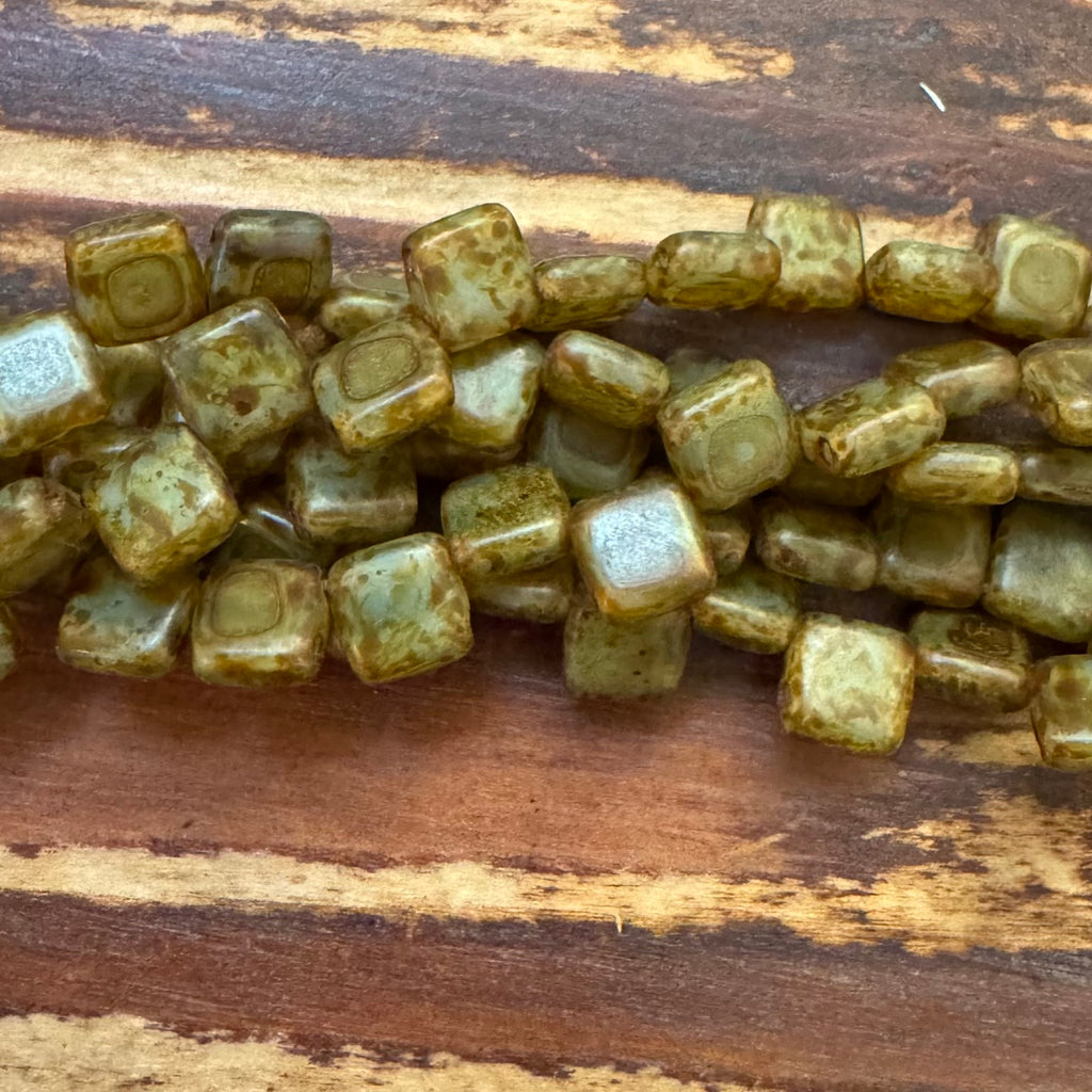 JKB-1028 - Czech Glass 2 Hole Tile Beads, Olive Picasso, 6mm | Strand