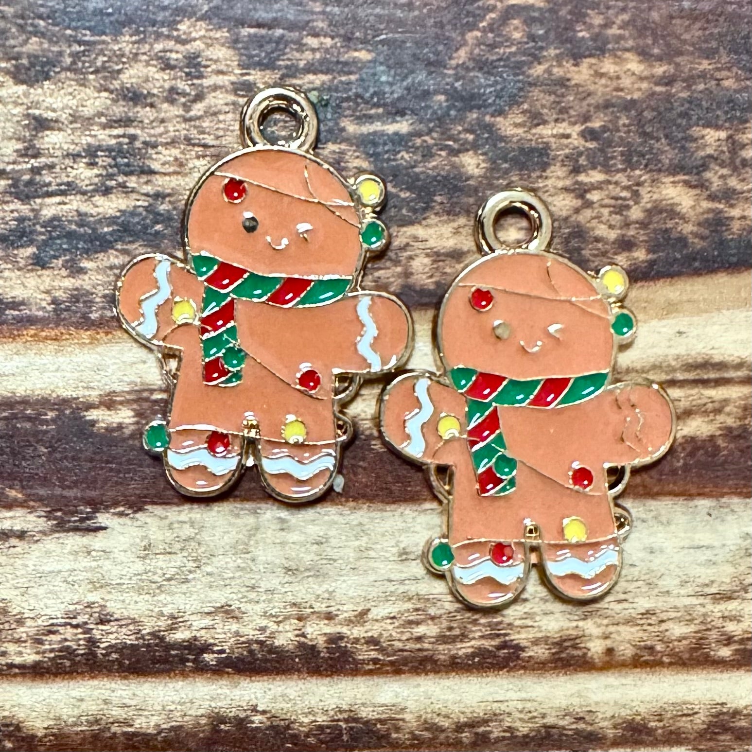 BCB-1363 - Gold Enamel Gingerbread Man Pendant, 23x17mm | Pkg 2