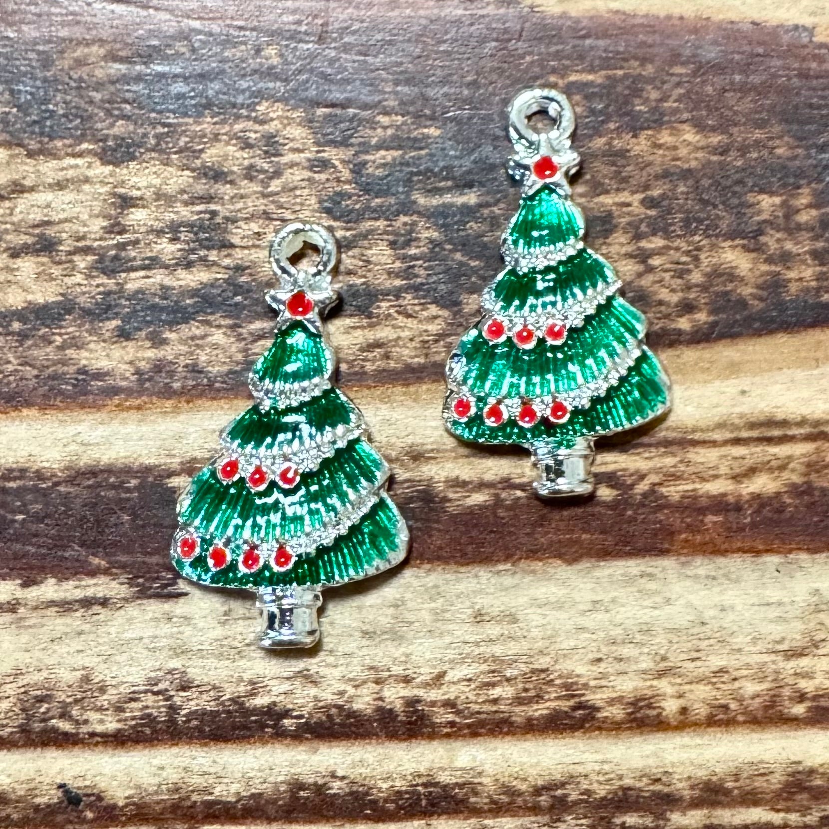 BCB-1362 - Silver Enamel Pendant, White Christmas Tree, 25x14mm | Pkg 2