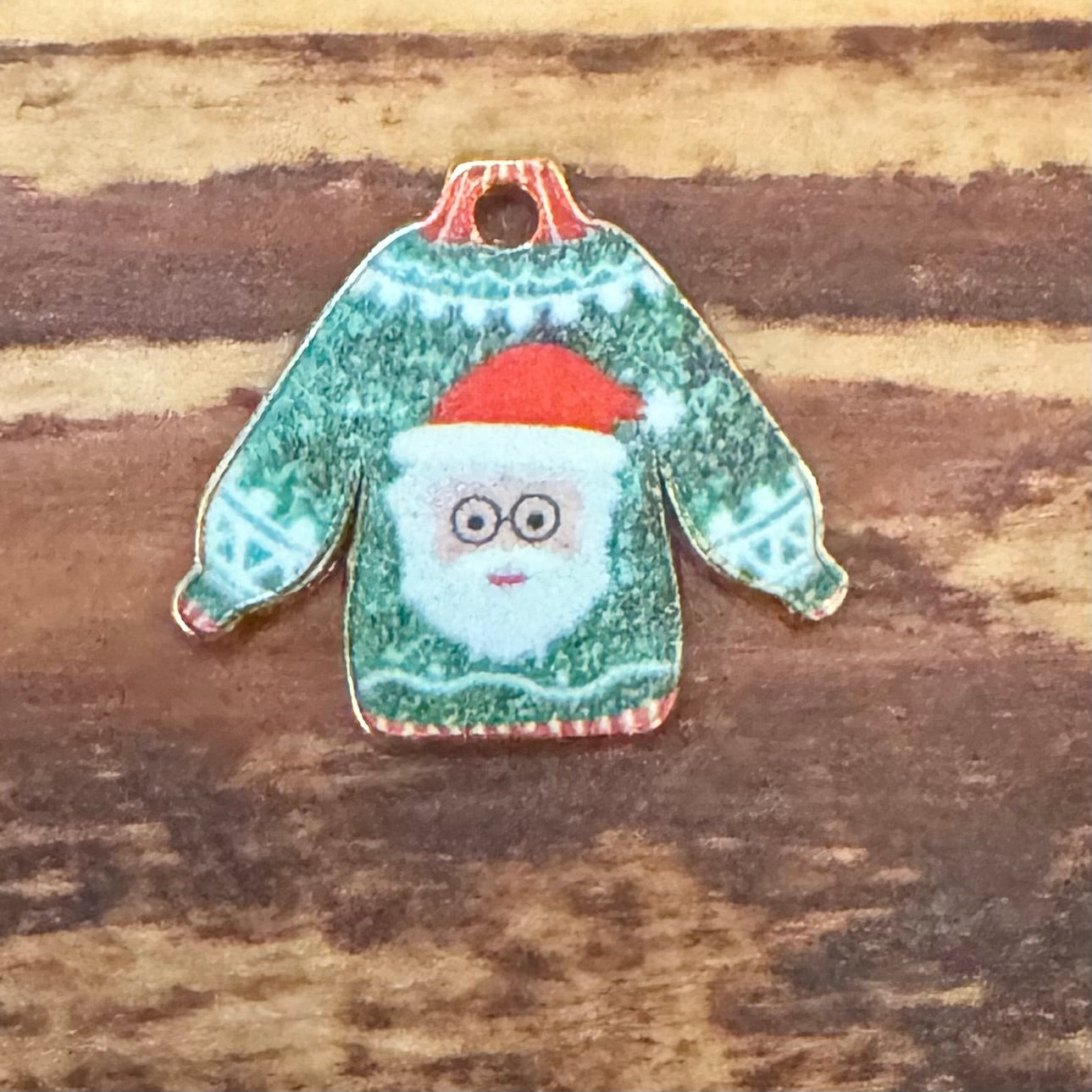 BCB-1510 - Gold Pendant, Ugly Christmas Sweater, Santa Face, 23x20mm | Pkg 1