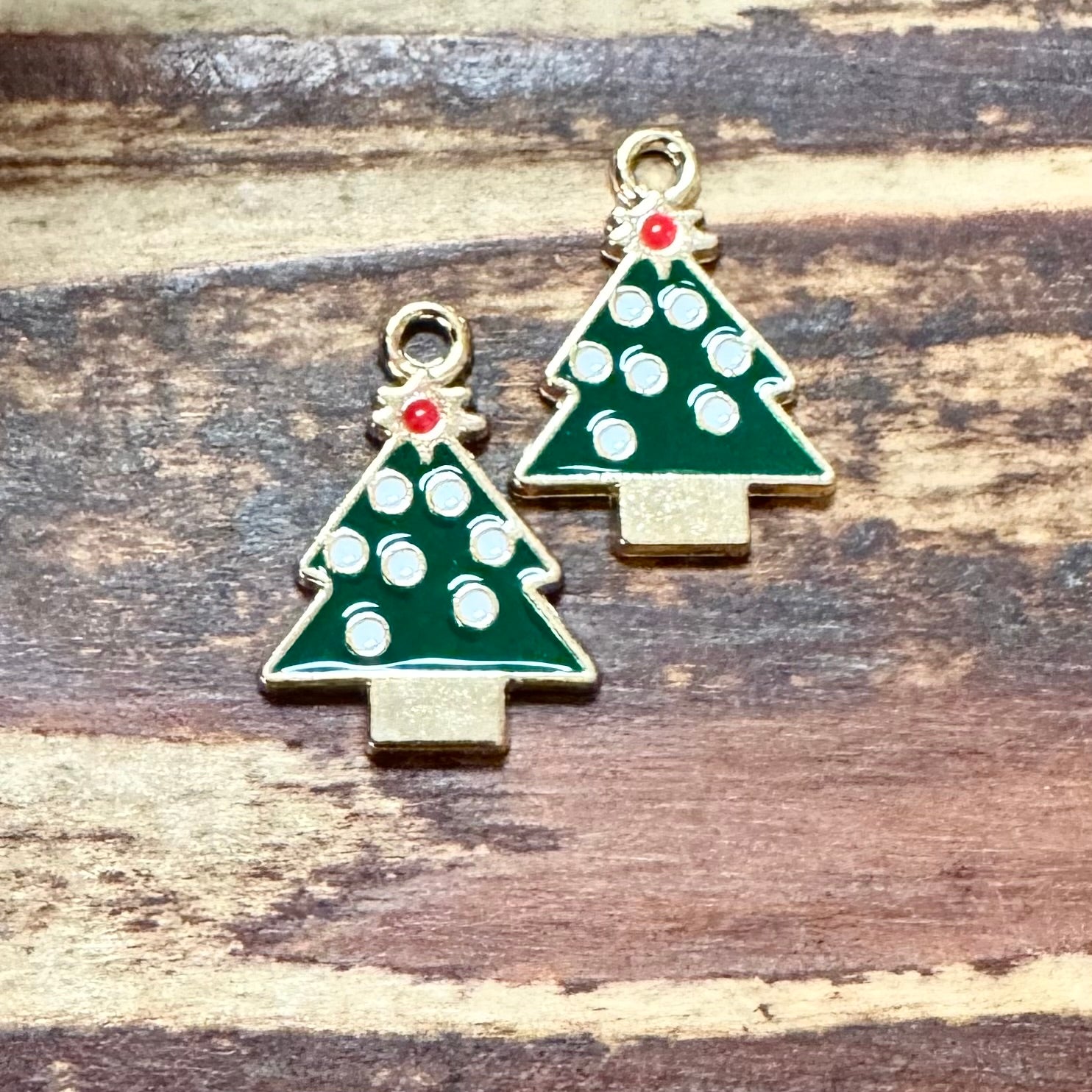 BCB-1198 - Gold Enamel Pendant, Christmas Tree With Red Star, 21x11mm | Pkg 2