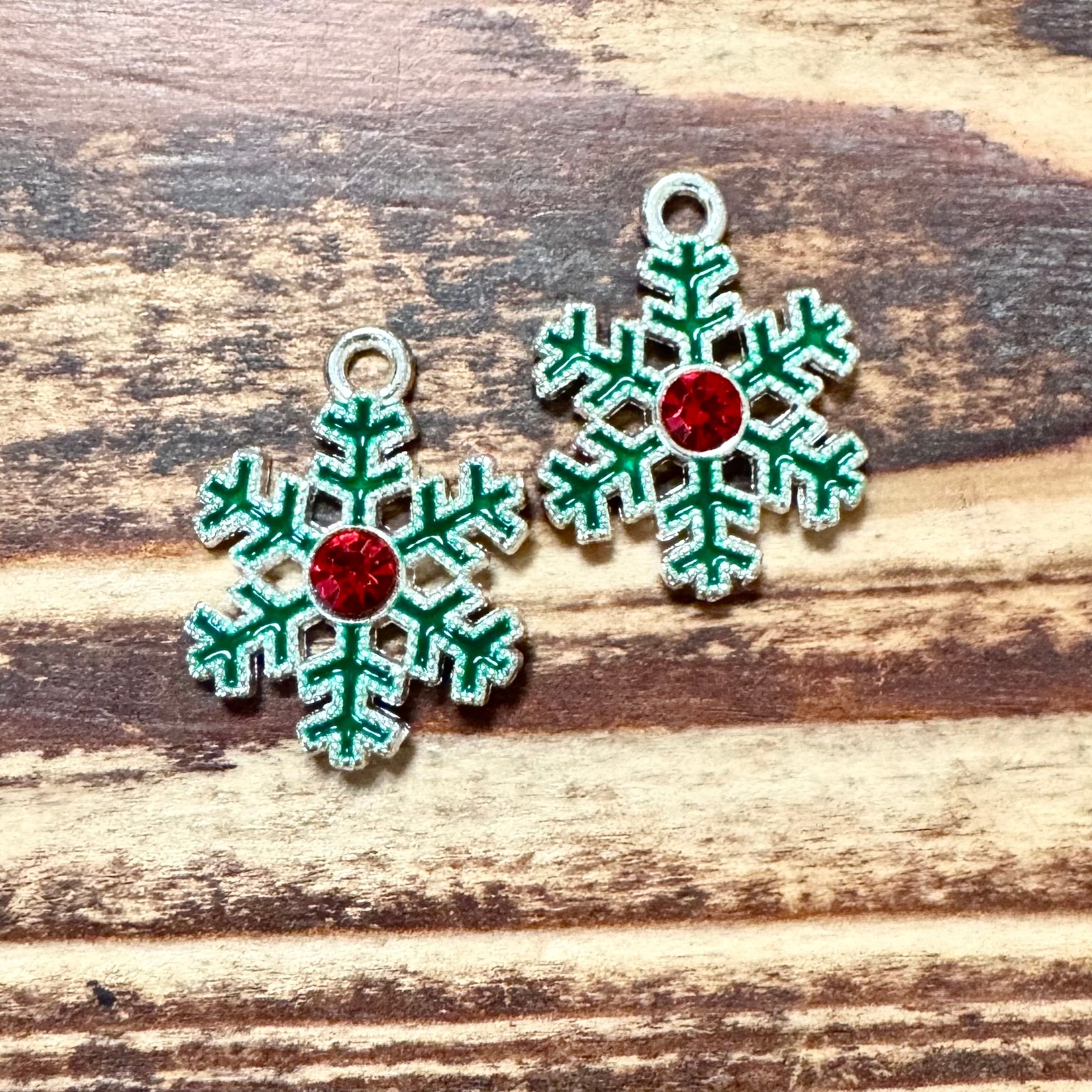 BCB-1376 - Gold Plated Enamel Snowflake, Green With Rhinestone, 23x17mm | Pkg 2