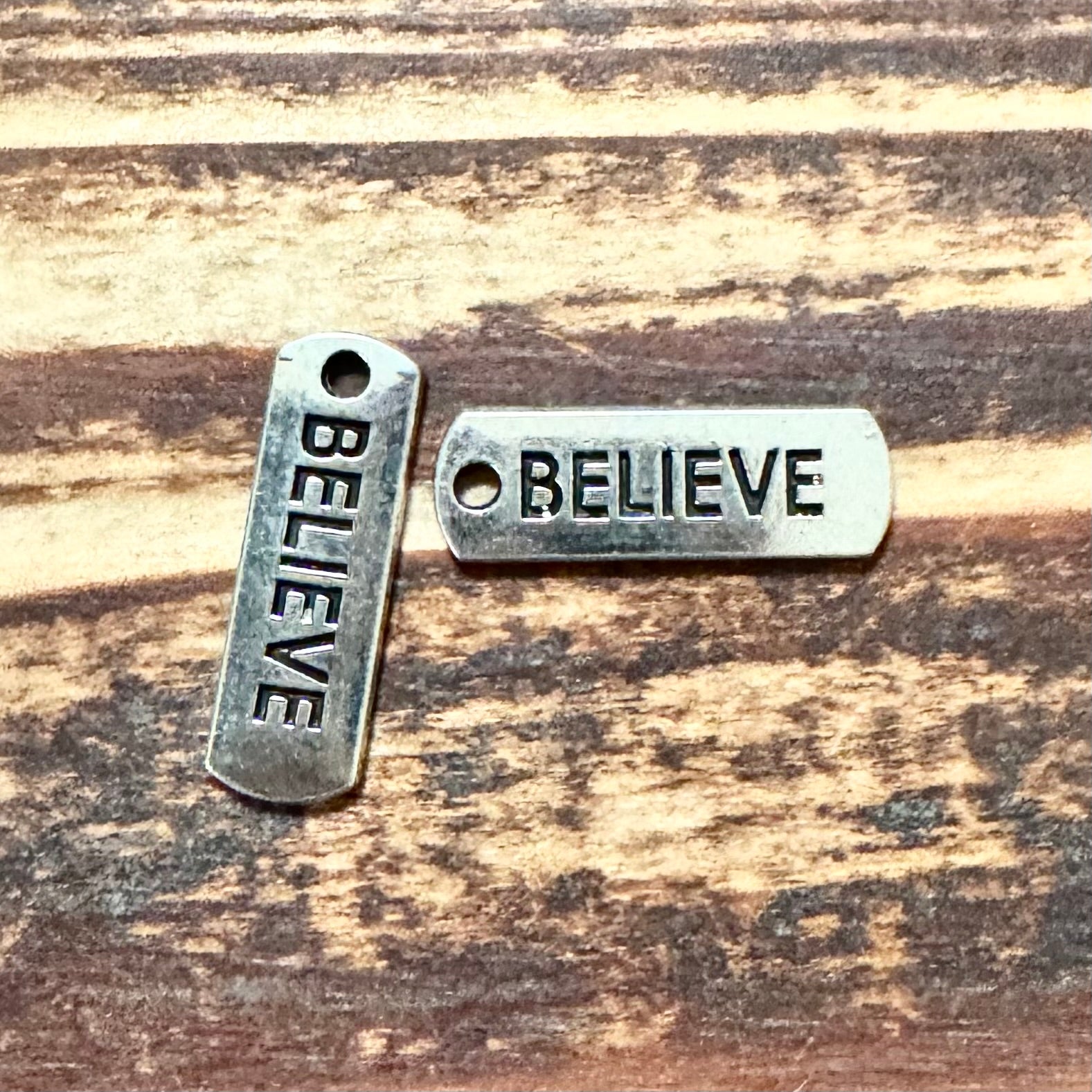BCB-1218 - Antique Silver Pendant, "Believe", 20x7mm | Pkg 2