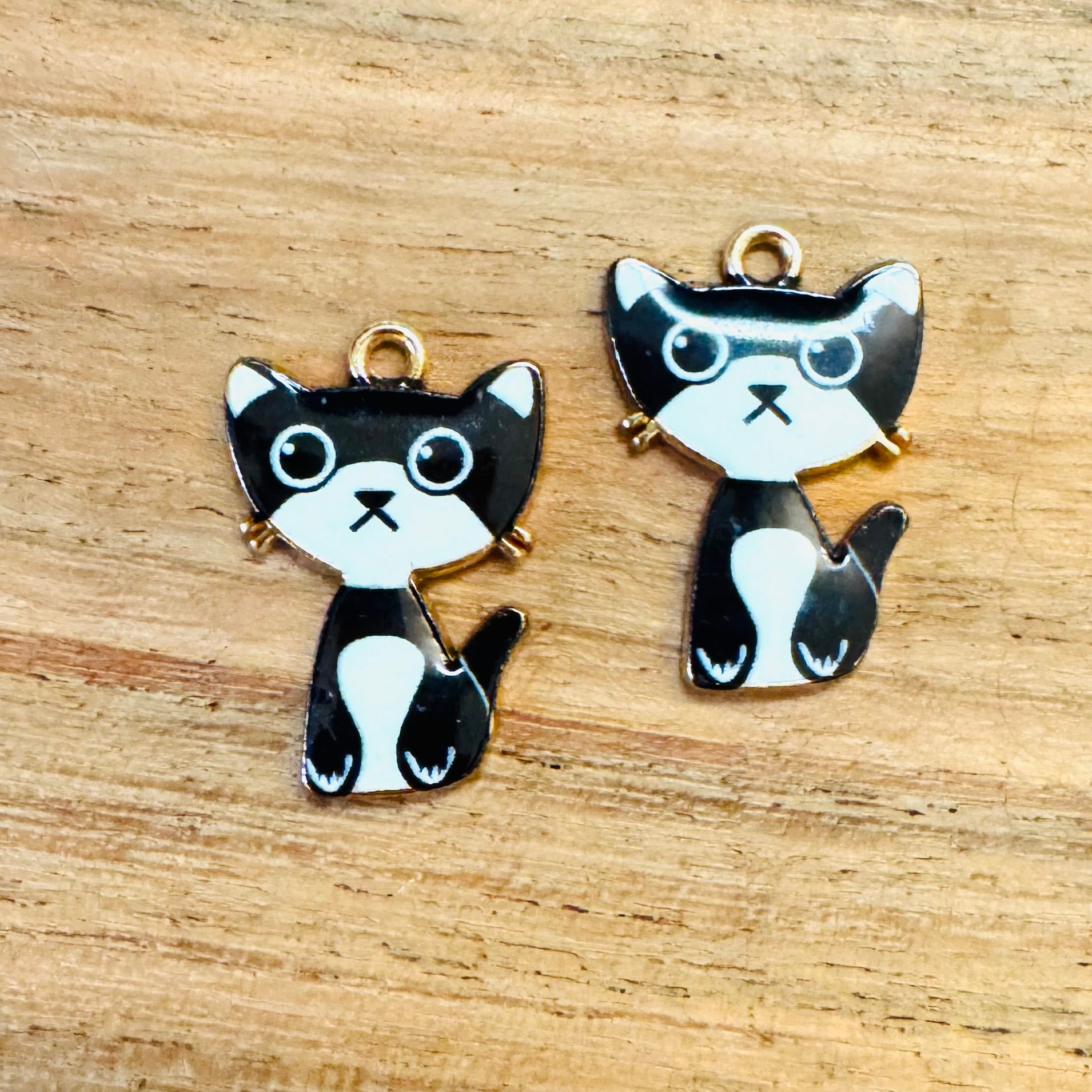 BCB-2018 - Antique Gold Enamel Cat, Black/White, 21x15mm | Pkg 2