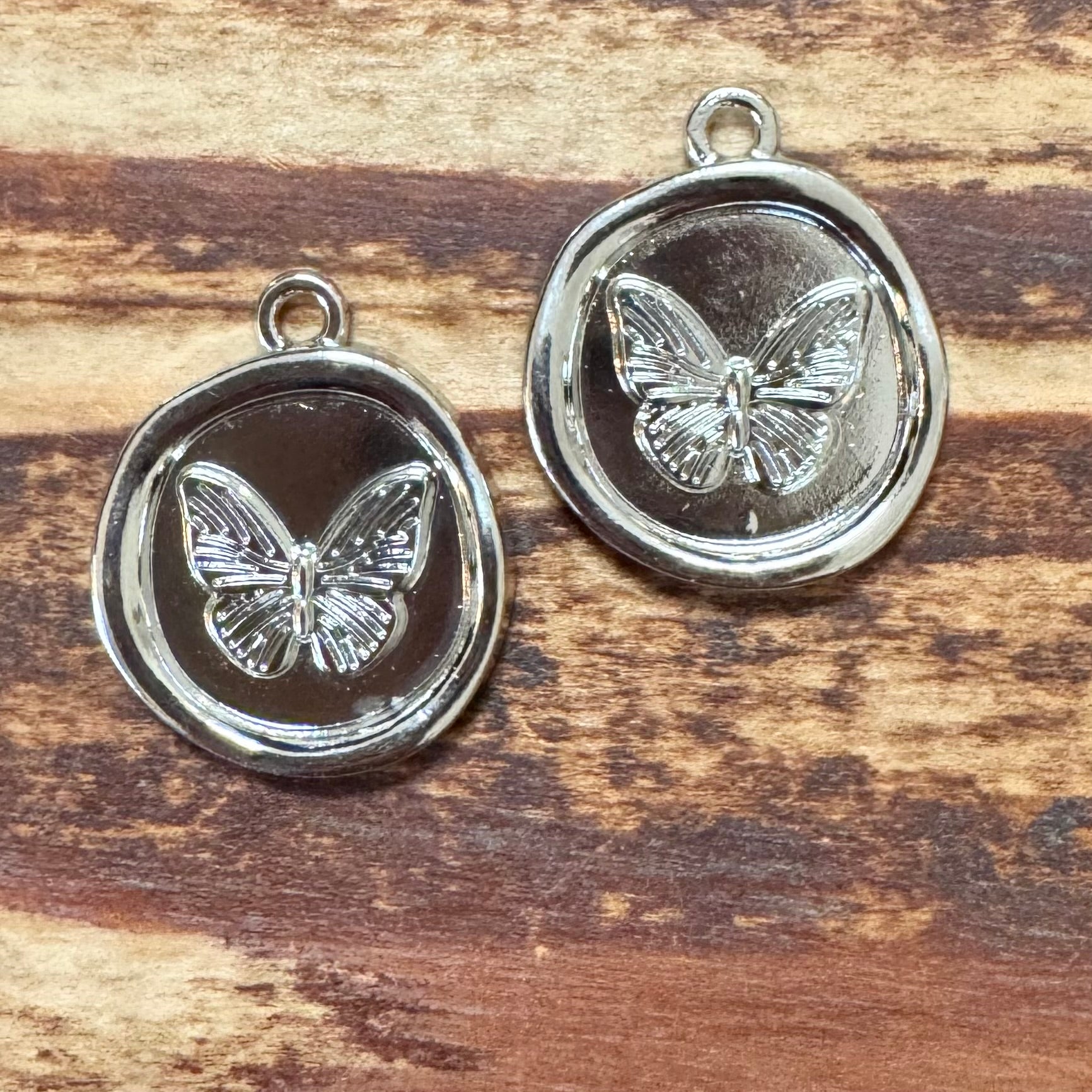 BCB-1401 - Silver Disc Pendant Silver Butterfly, 18x21mm | Pkg 2