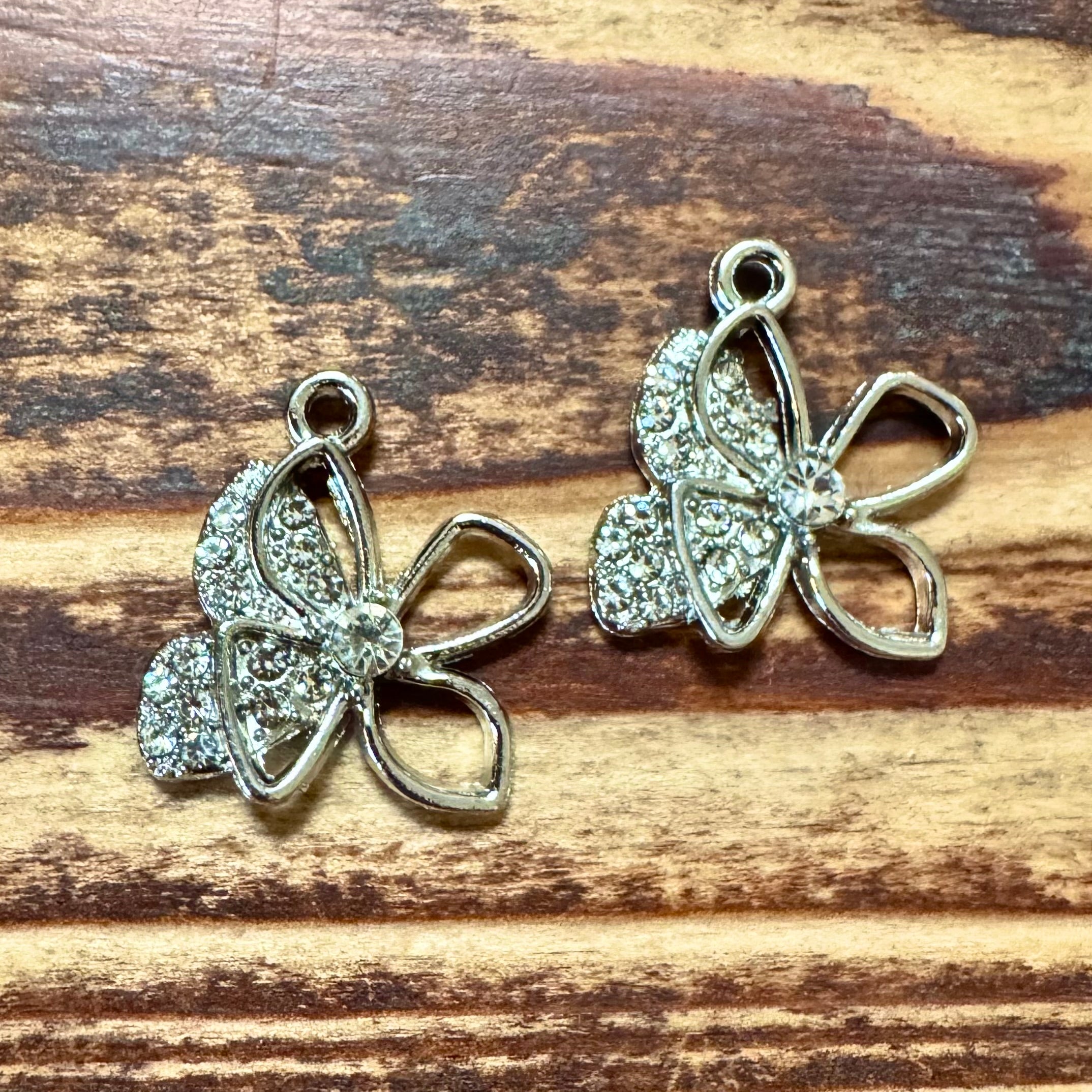 BCB-1374 - Silver Flower Pendant With Rhinestones, 20x17mm | Pkg 2