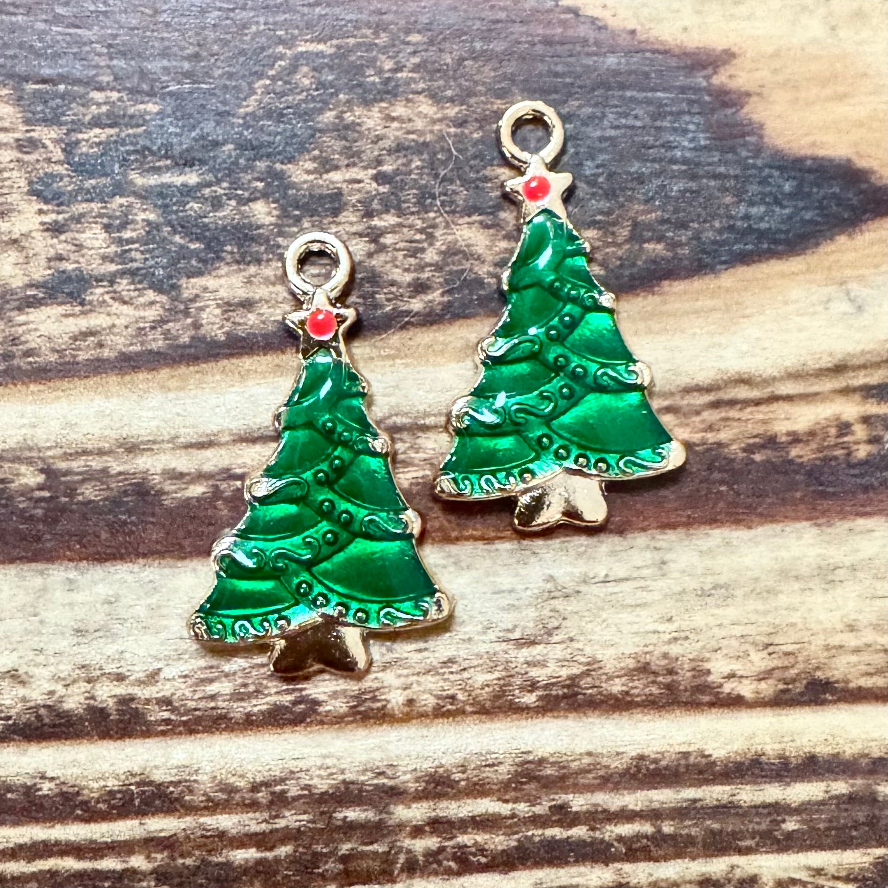 BCB-1367 - Gold Enamel Pendant, Green Tree With Tinsel, 24x14mm | Pkg 2