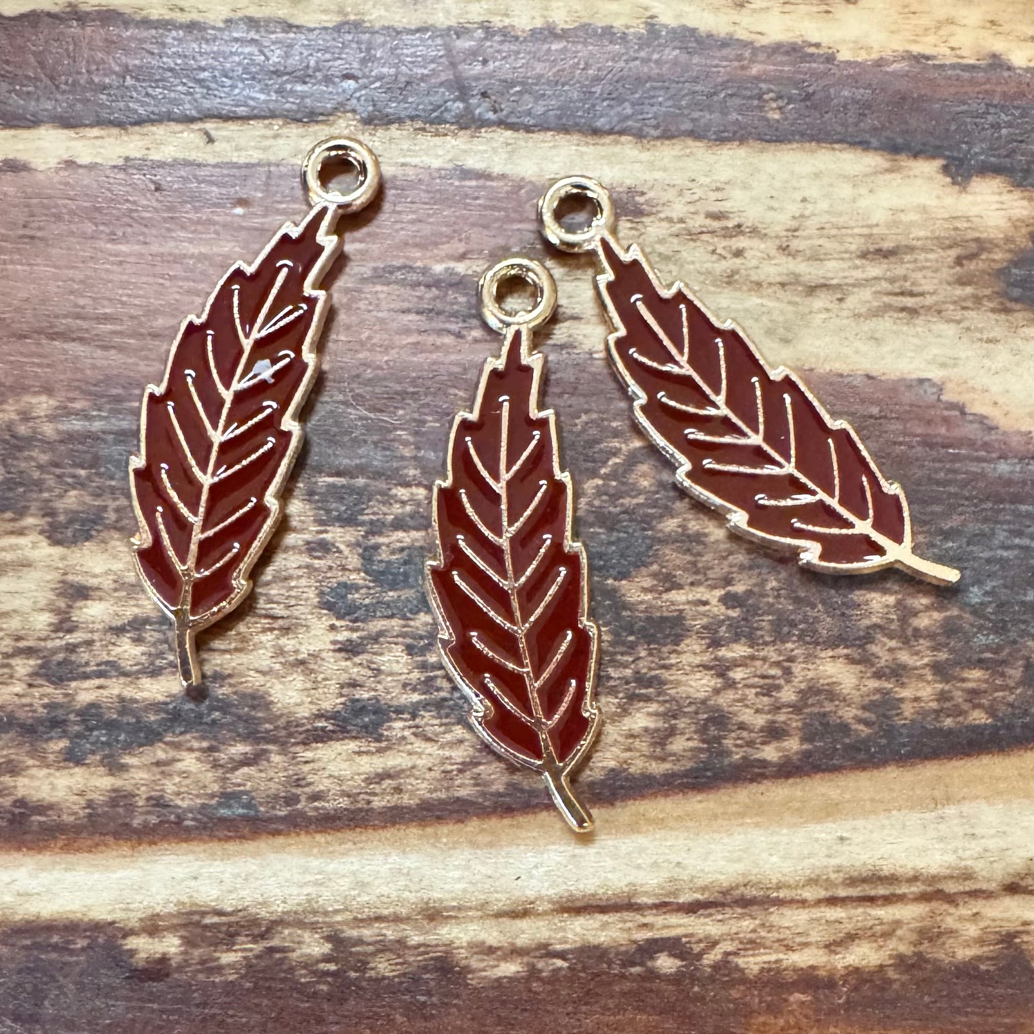 BCB-1368 - Gold Enamel Pendant, Crimson Leaves, 27x8mm | Pkg 3