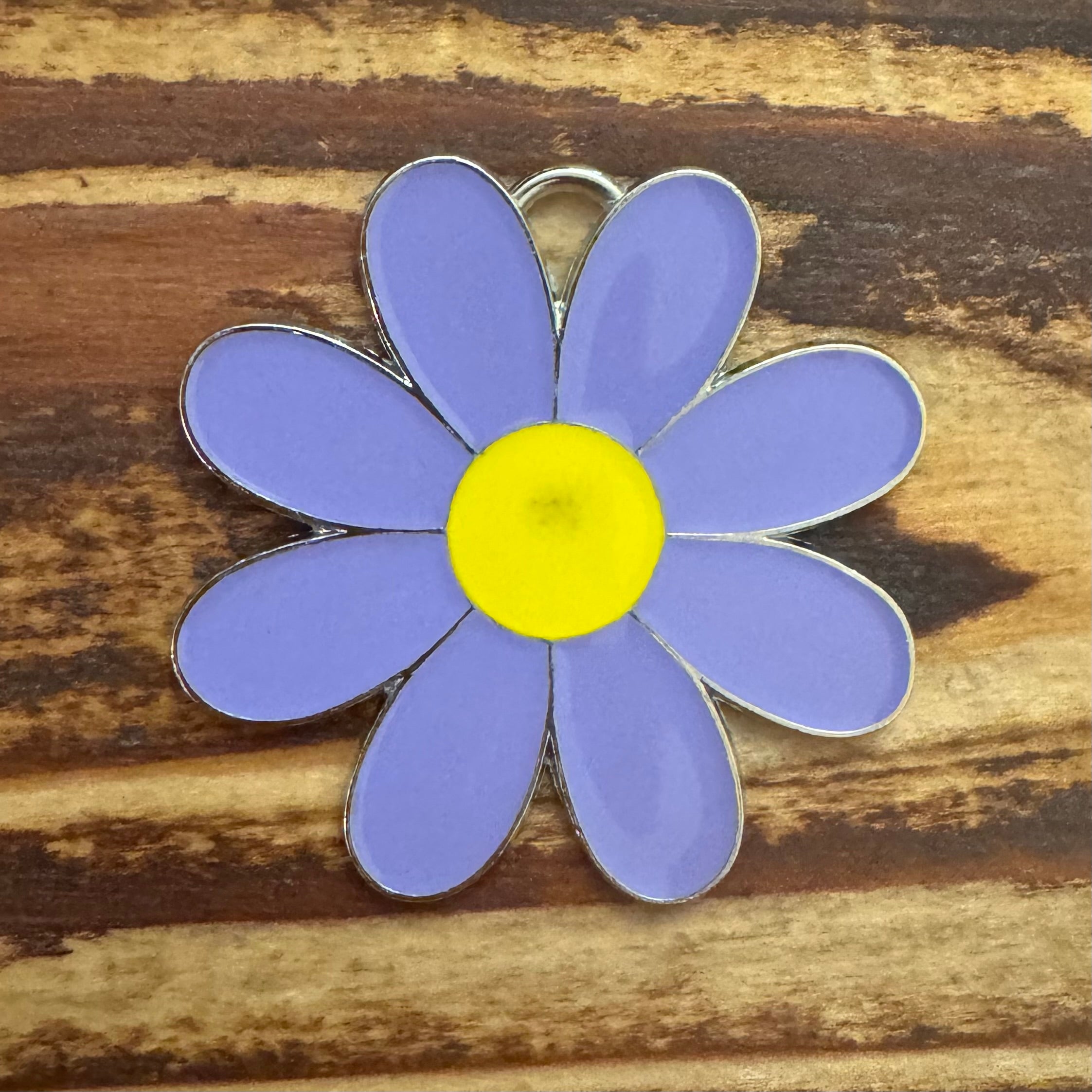 BCB-1425 - Silver Enamel Daisy Pendant, Lilac/Yellow, 44mm | Pkg 1