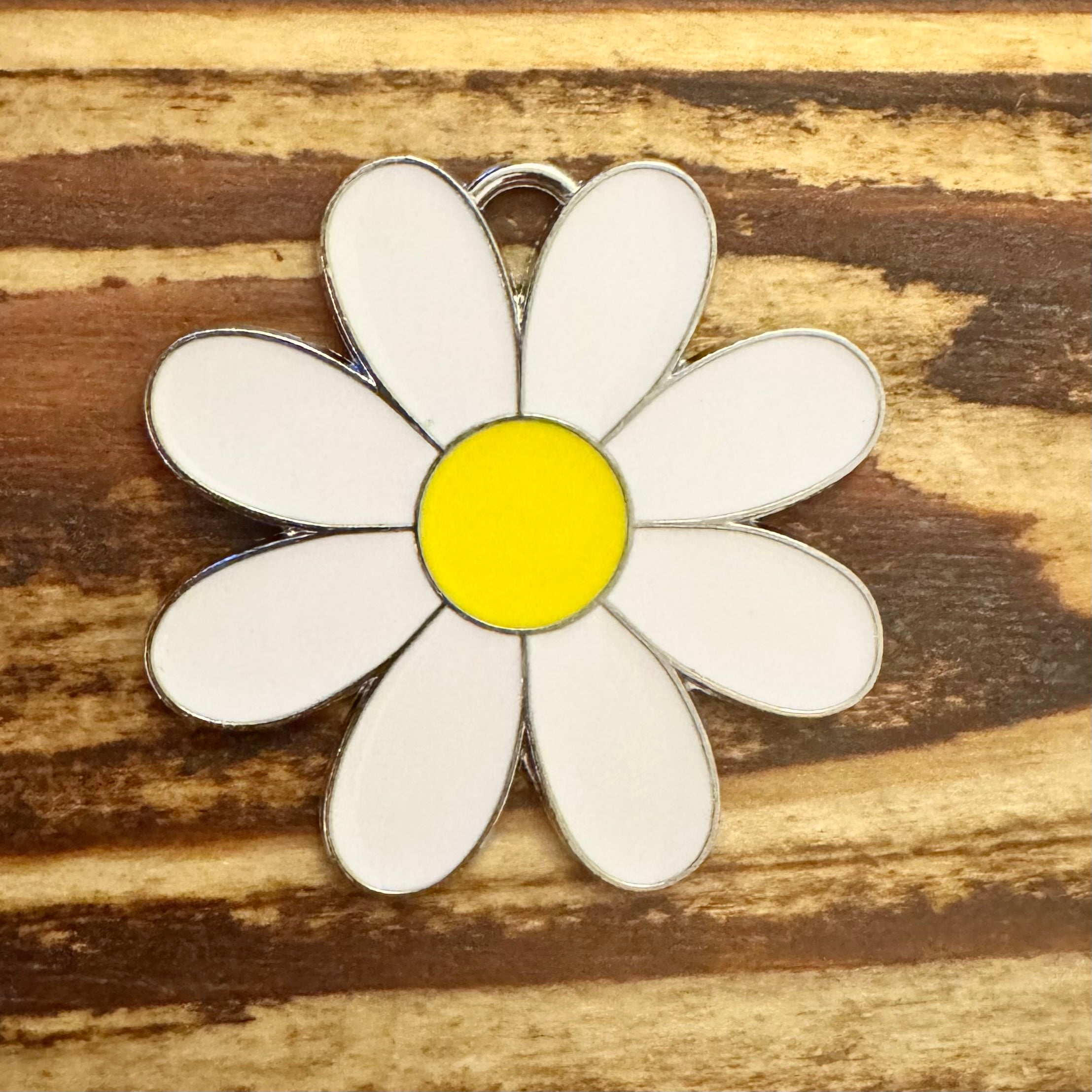 BCB-1426 - Silver Enamel Daisy Pendant, White/Yellow, 44mm | Pkg 1