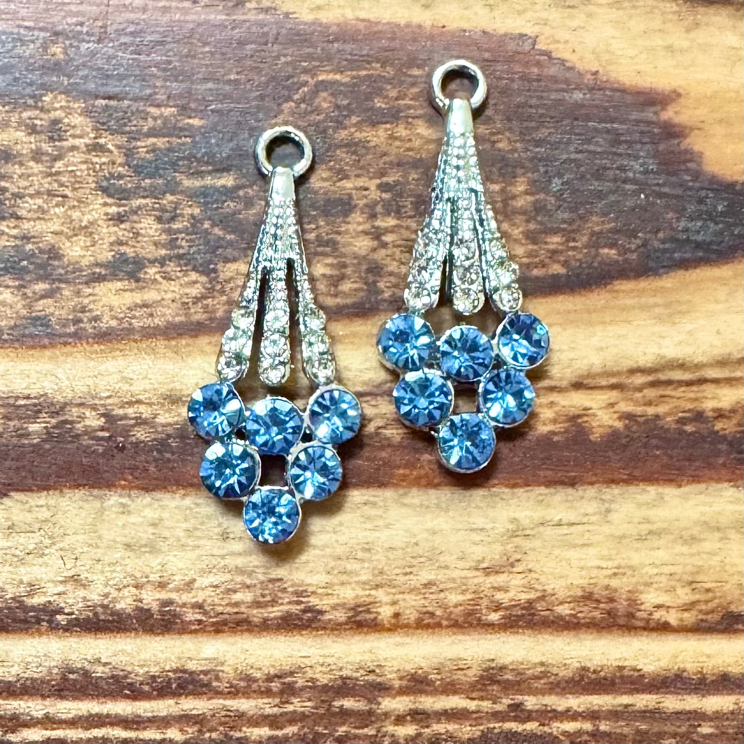 BCB-1432 - Antique Silver Teardrop Pendant With Blue Crystals, 16x28mm | Pkg 2