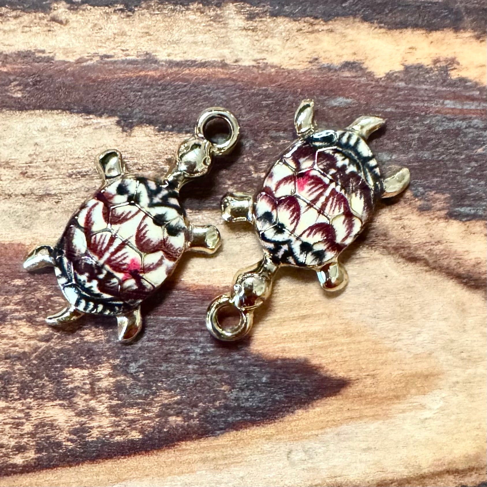 BCB-1451 - Antique Gold Sea Turtle Pendant With Enamel, Volcano, 13x24mm | Pkg 2