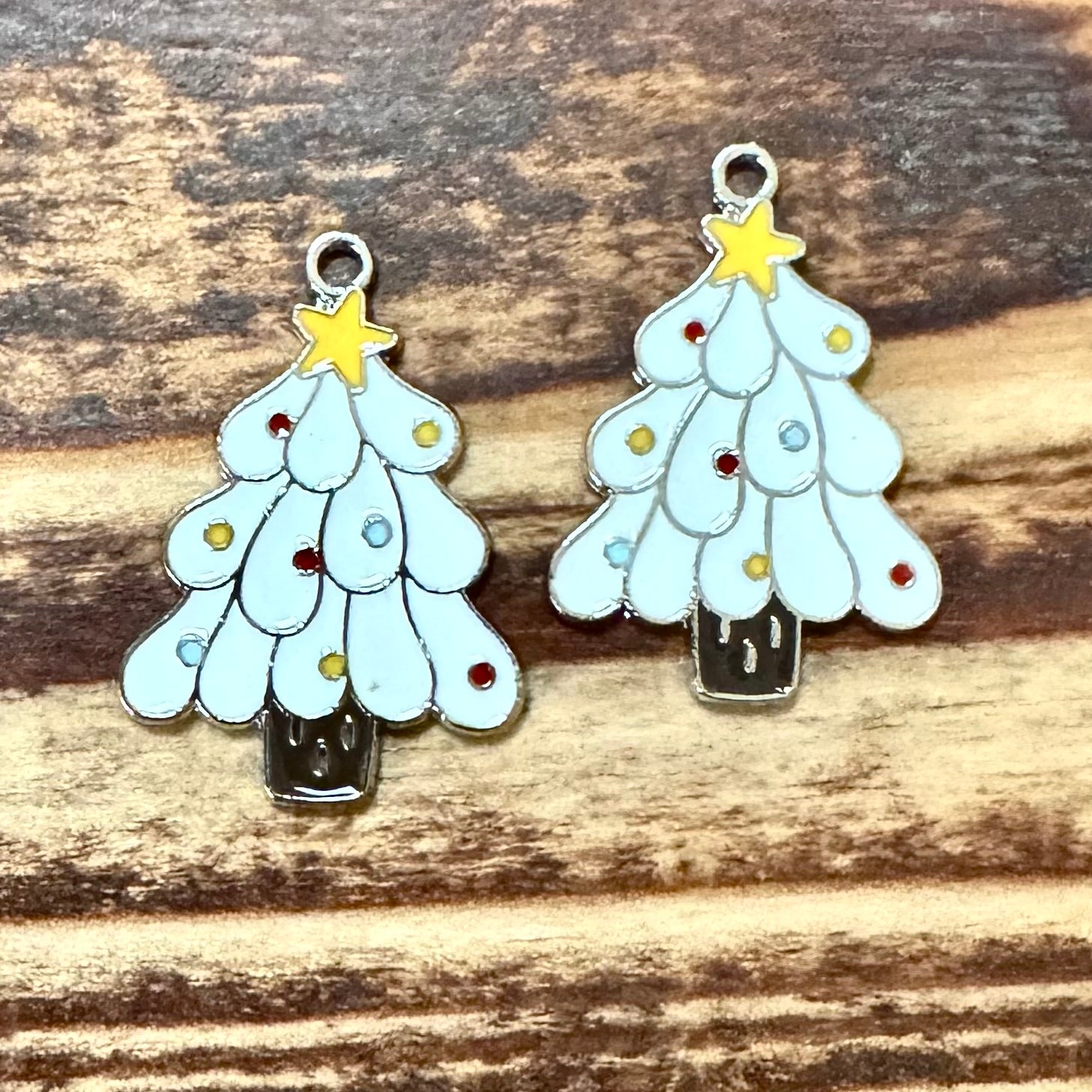 BCB-1464 - Silver Enamel Pendant, White Christmas Tree, 15x22mm | Pkg 2