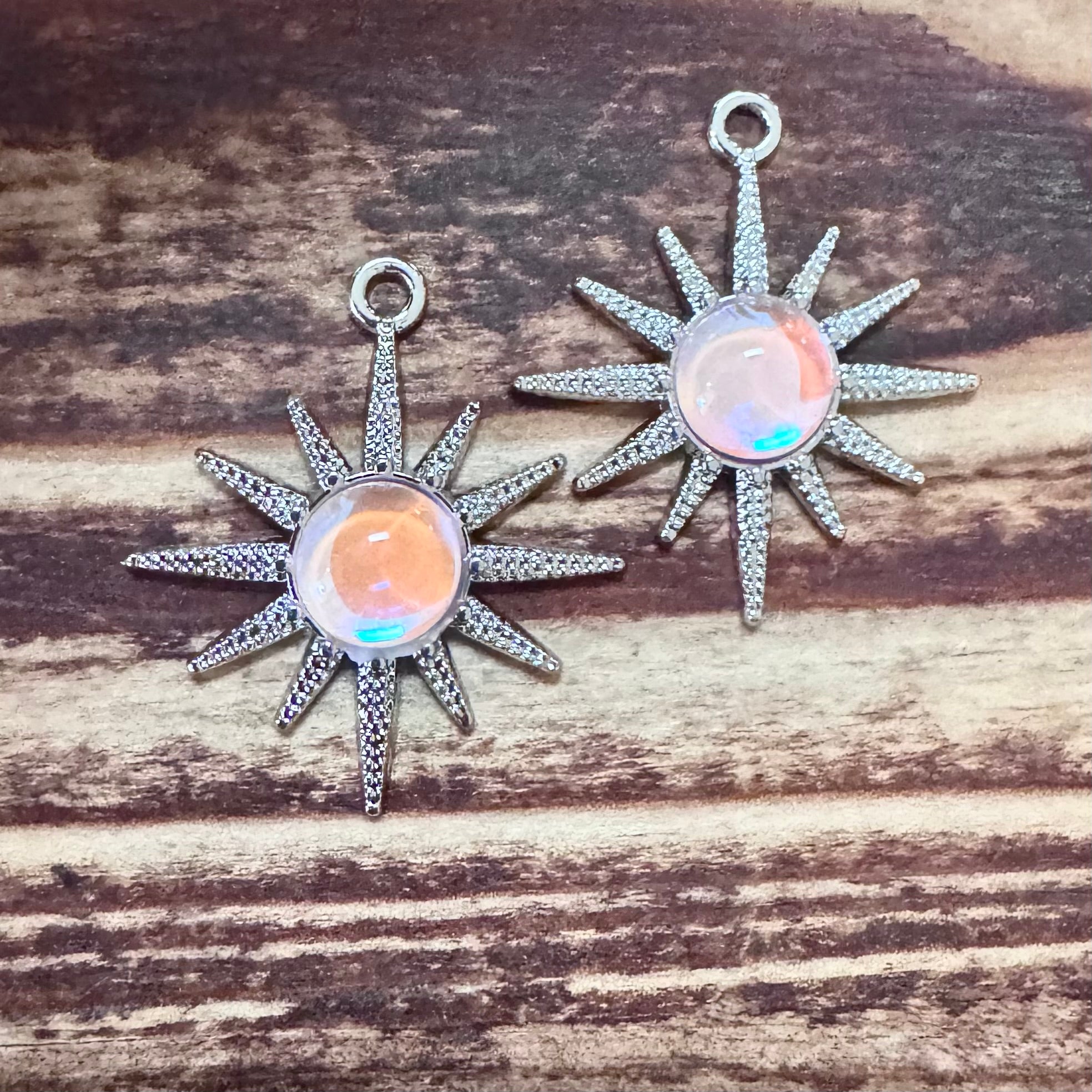 BCB-1473 - Silver Plated Sun Pendant With CZ Center, Pink, 24x28mm | Pkg 2