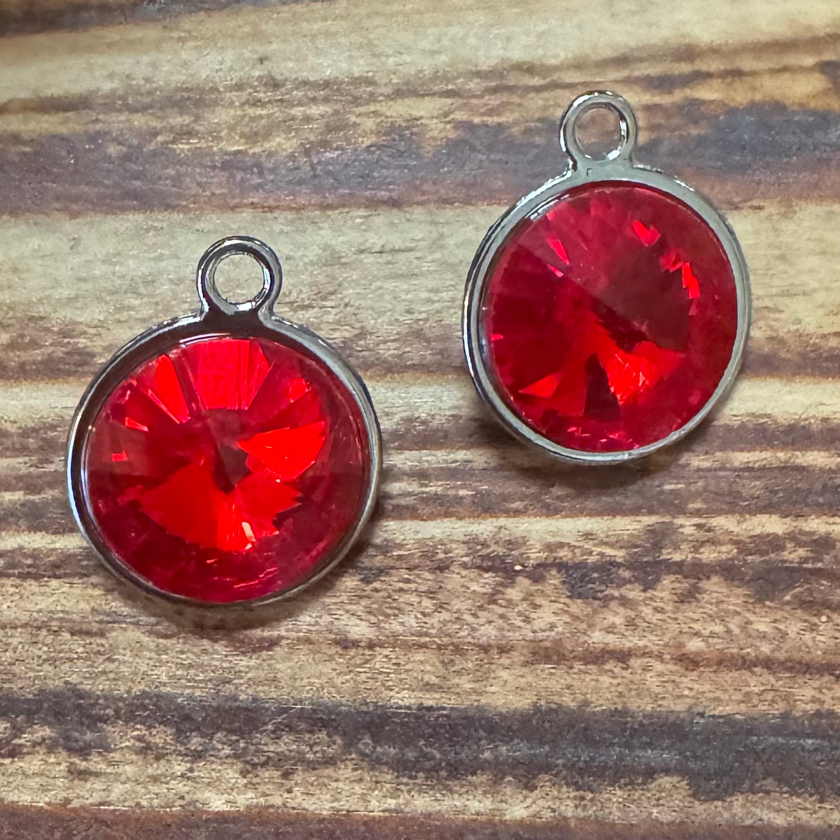 BCB-1475 - Silver Plated Pendant With Crystal, Siam, 17mm | Pkg 2