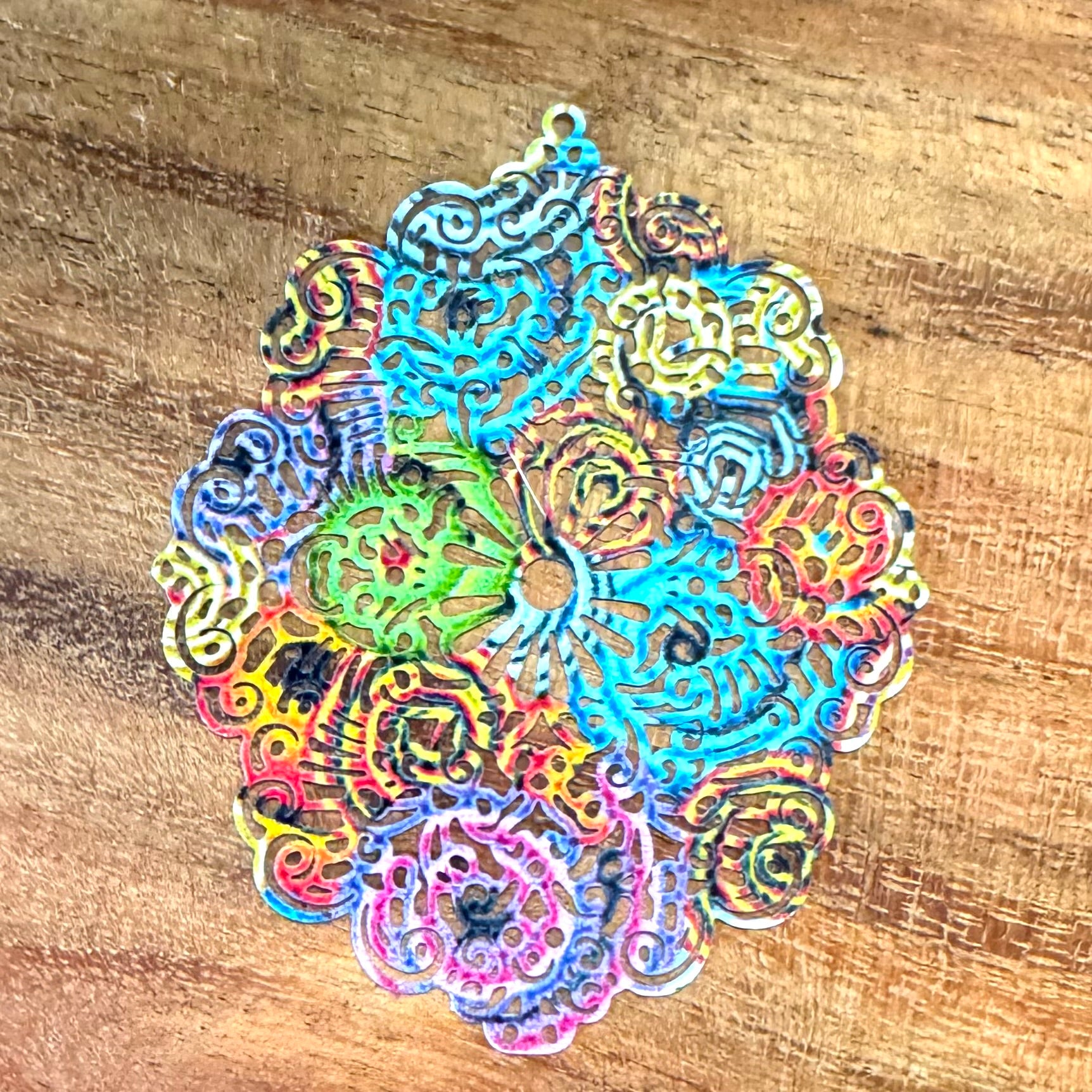 BCB-1863 - Lightweight Brass Kaleidoscope Pendant, 40x50mm | Pkg 1