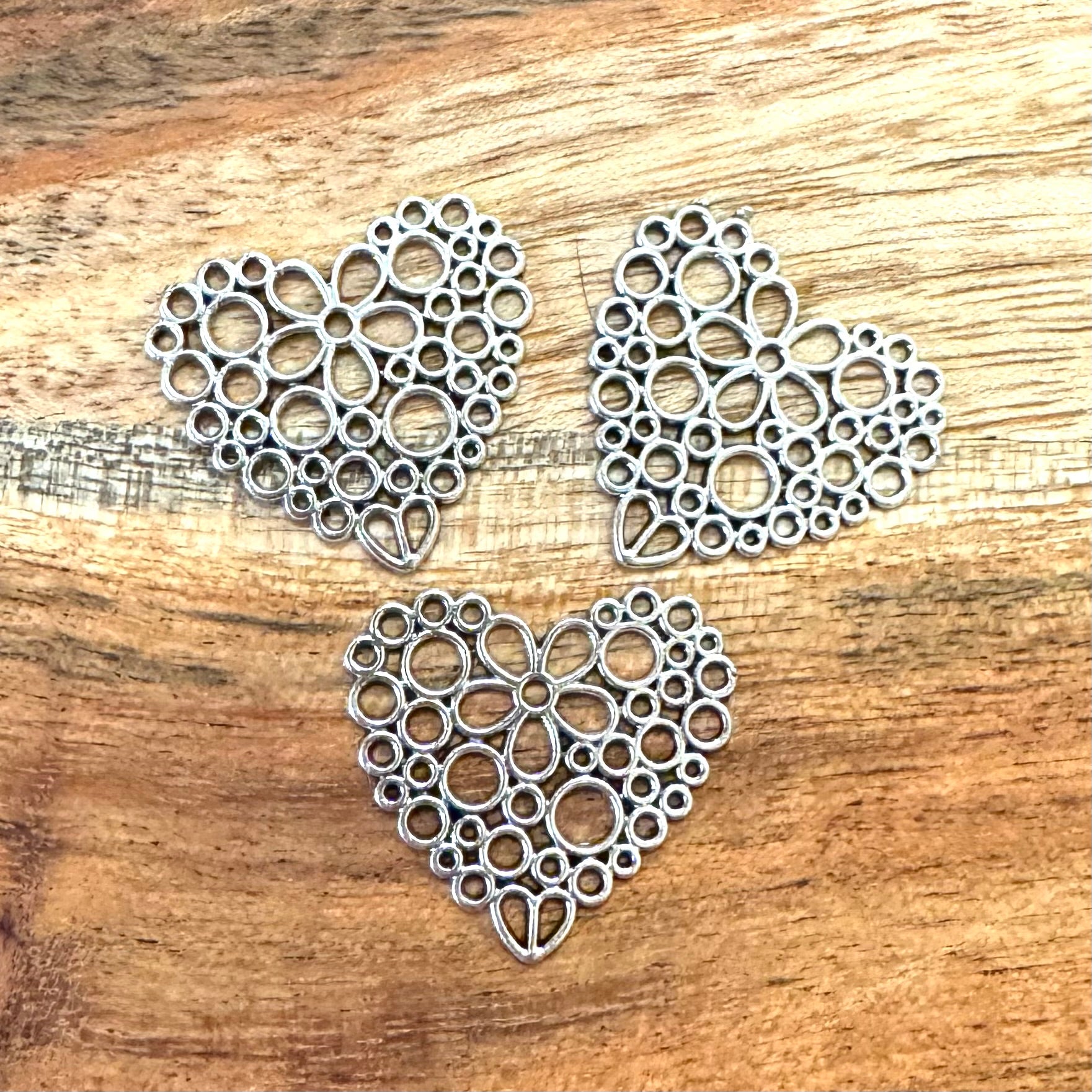 BCB-2017 - Antique Silver Open Heart Pendant With Flower, 25mm | Pkg 3