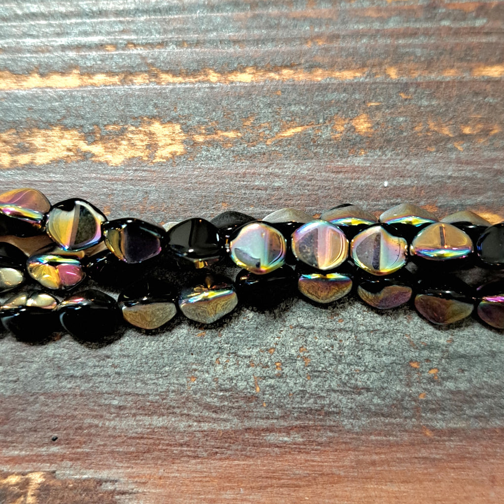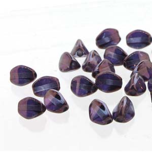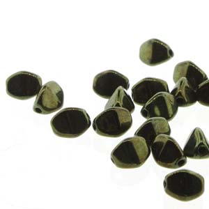These pinch beads from the Czech Republic are offered in 5mm and 7mm sizes. As the name implies, they have a pinched shape. They are sold by the strand, about 50 beads to the strand for the 5mm size, and 25 beads per strand for the 7mm size.