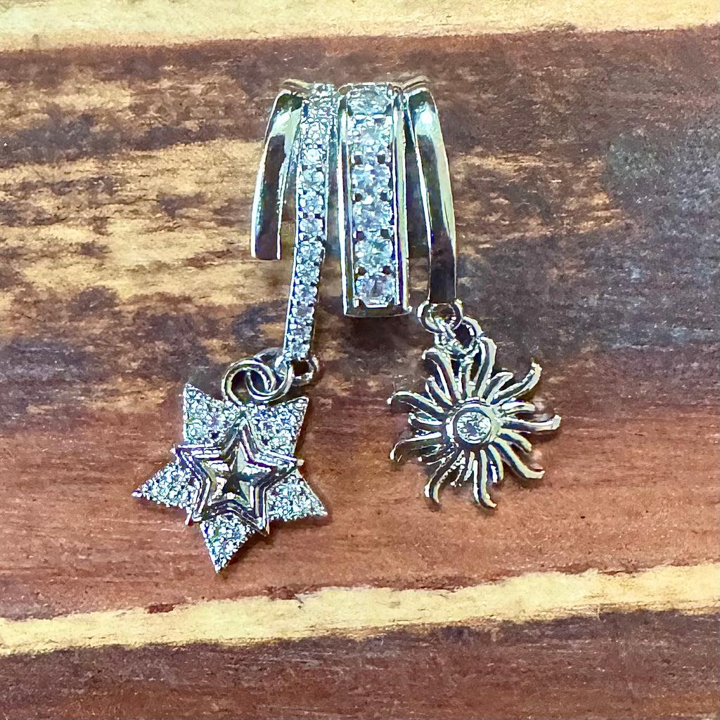 BCB-1594 - Silver Brass Drop Pendant With Crystals, Sun And Star, 17x34mm | Pkg 1