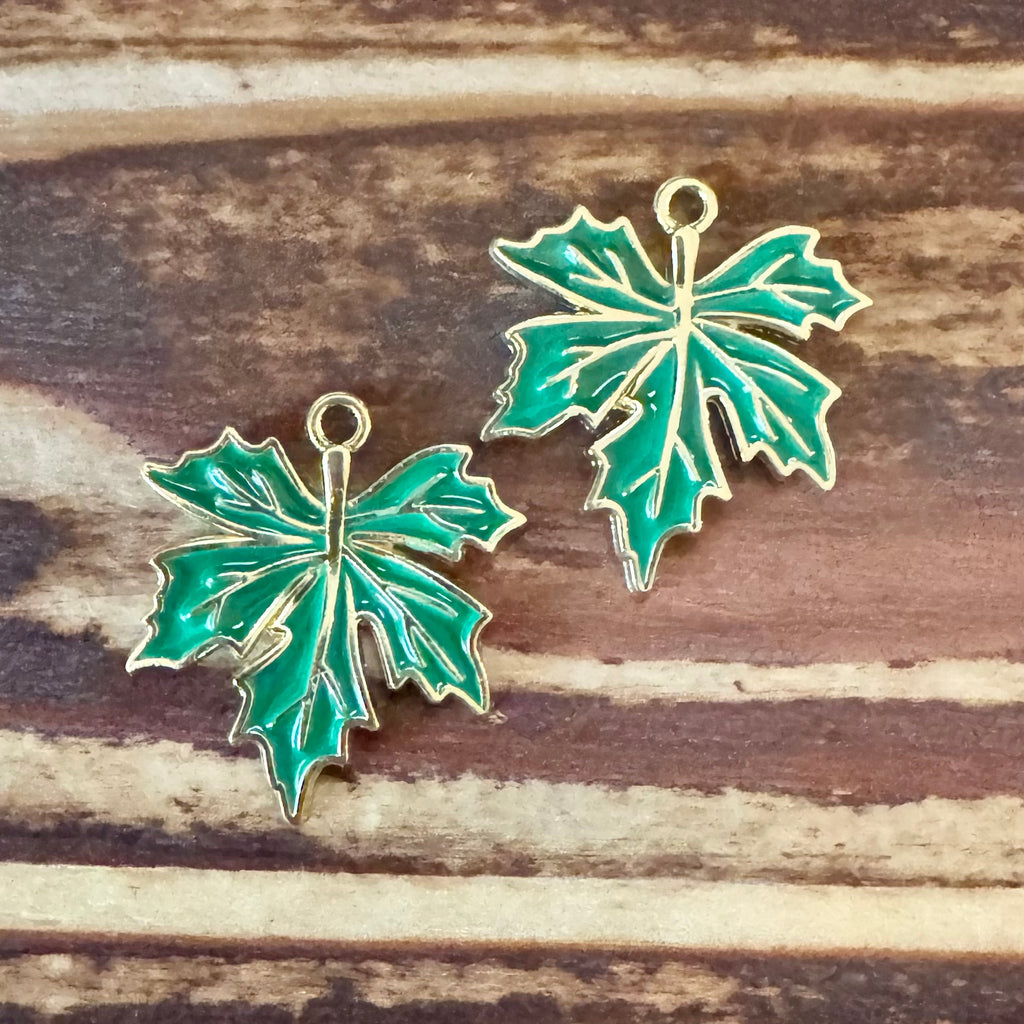 BCB-1595 - Antique Gold Leaf Charm With Enamel, Spring Green, 23x25mm | Pkg 2