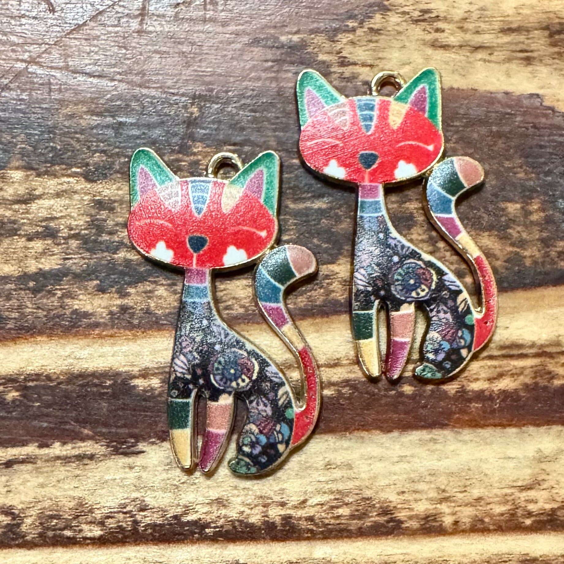 BCB-1141 - Antique Gold Pendant, Cat With Red Face, 19x30mm | Pkg 2