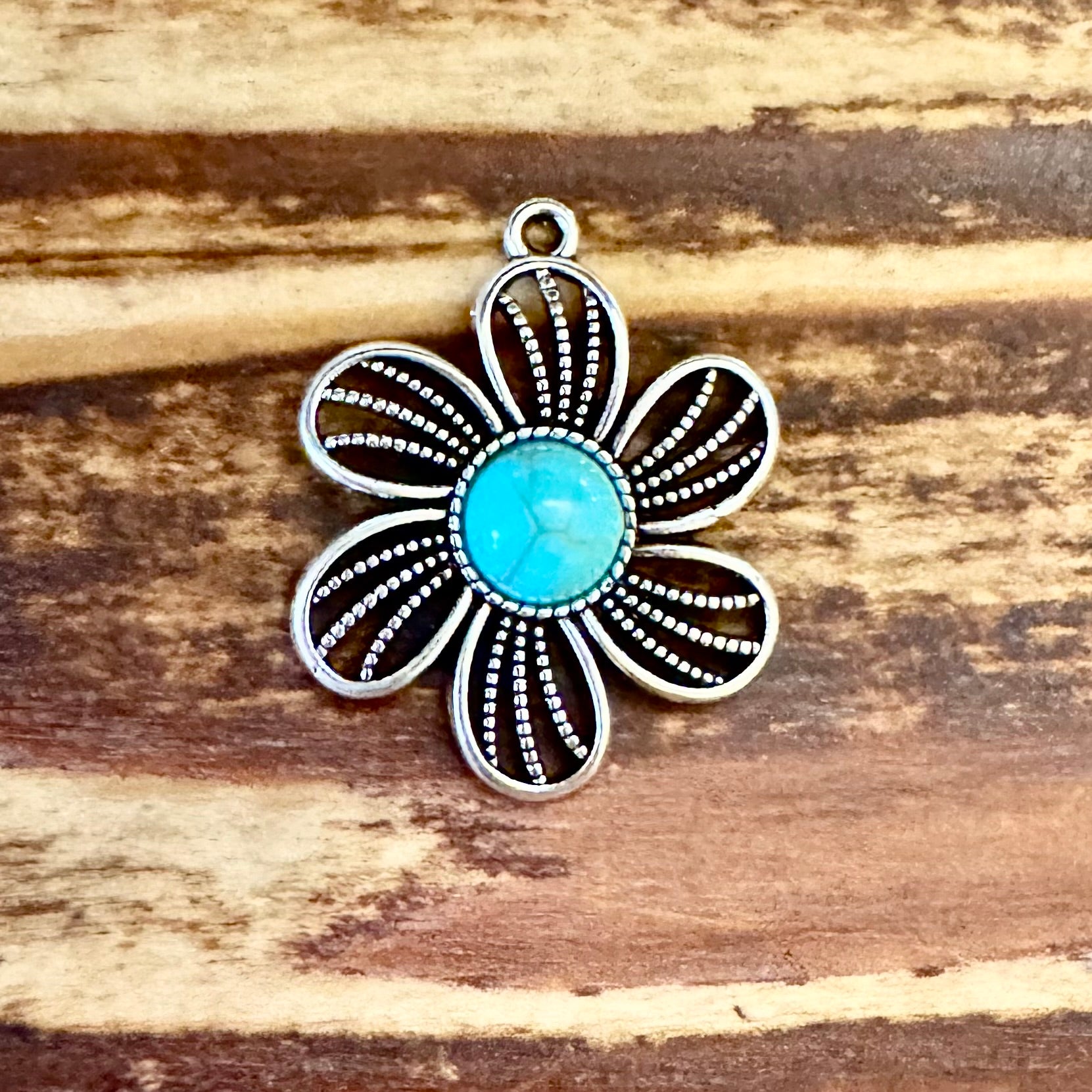BCB-1696 - Antique Silver Flower Pendant With Howlite Center, 26mm | Piece